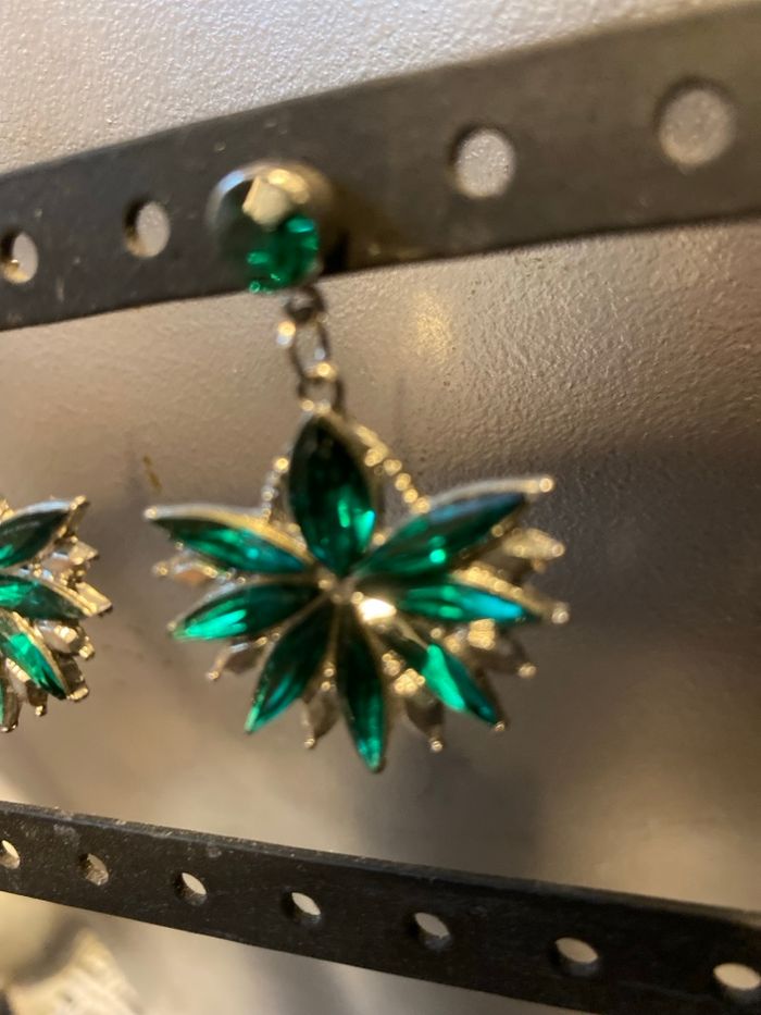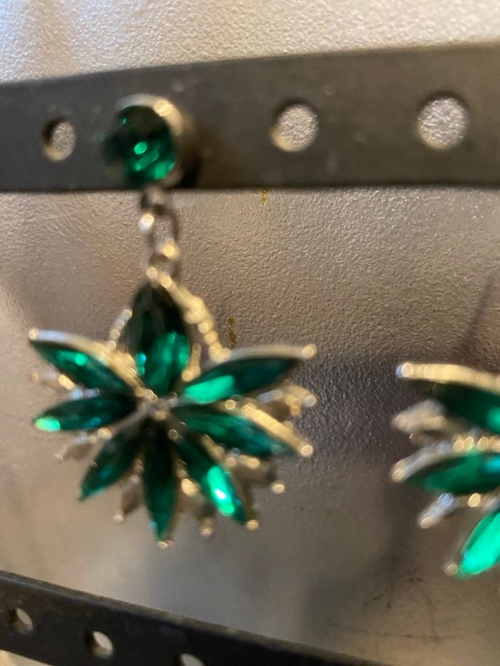 Boucles d'oreilles breloques feuillage strass vert - photo numéro 2