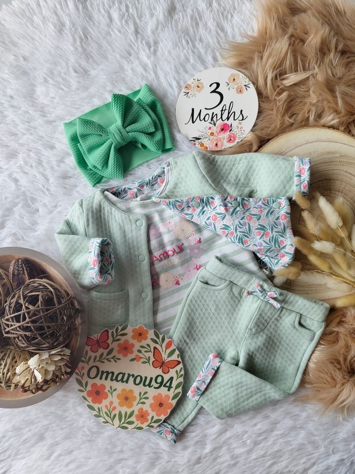 Ensemble complet 4 pièces obaïbi fille 3 mois 🎀