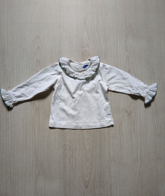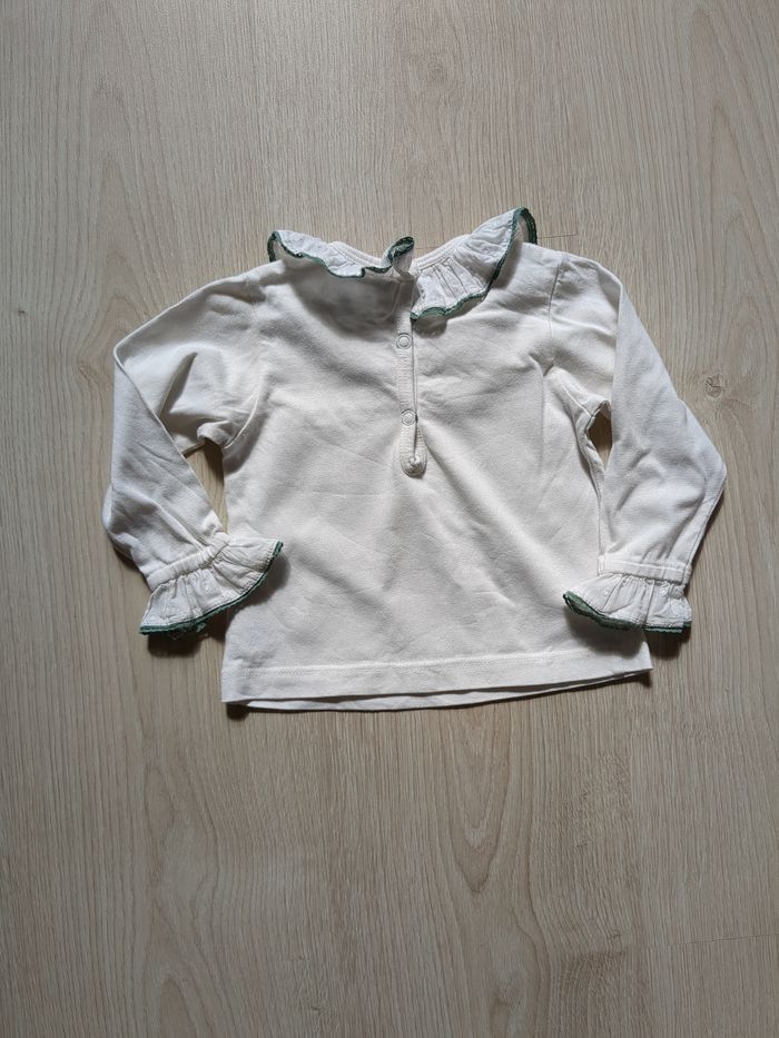 T-shirt ma'ches longues col et manches à volants 12 mois