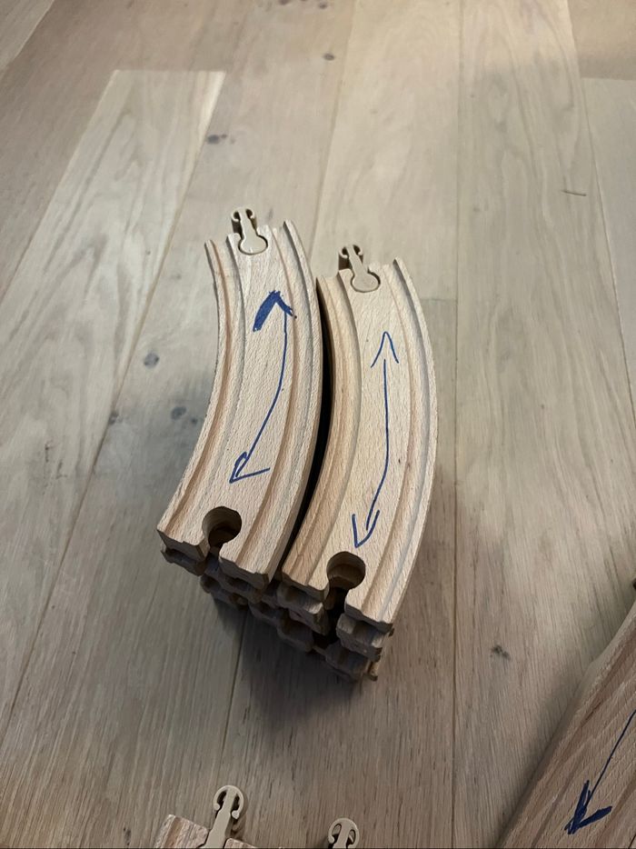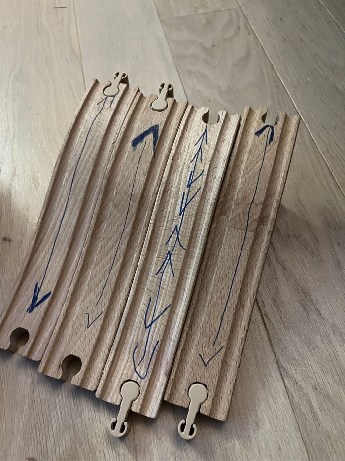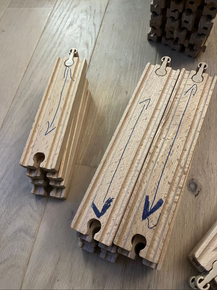 Lot de rails en bois IKEA - 38 pièces - Bon état (avec flèches dessinées)