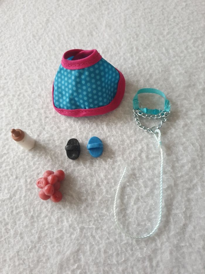 Schleich 42367 Soins des poulains L'étrille et la brosse douce permettent de nettoyer la robe du poulain. La petite couverture tiendra chaud au bébé cheval. le poulain sera nourri au biberon. Le set comprend : - une couverture pour poulain Schleich - un licol - un biberon - une étrille bleue - une brosse douce - une pomme rouge Parfait état.