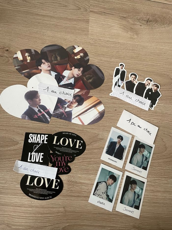 vnted et le bon coin : woosanra beebs : floraritz 📓 shape of love 👥 Monsta X #woosanraMONSTAX 🗂️ version Vibe 📔 inclus avec photocard Jooheon et les pre-ordre benefit sauf la photocard unit, vous pouvez choisir les inclusions: stickers membres: ✅changkyun x2 ✅kihyun ✅hyungwon stickers: ✅love x2 ✅shape of love ✅you’re my love polaroïd: ✅hyungwon ✅jooheon x2 ✅minhyuk cœur: ✅jooheon x2 ✅hyungwon ✅kihyun poster: ✅changkyun ✅minhyuk ✅hyungwon x2 🔎 très bon état la couverture a légèrement prit la trace du cd ➕ les trois autres versions sont disponibles dans mon dressing