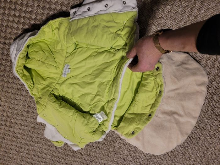 Cette chancelière est une pièce pratique qui combine une veste avec une poche de couchage amovible.