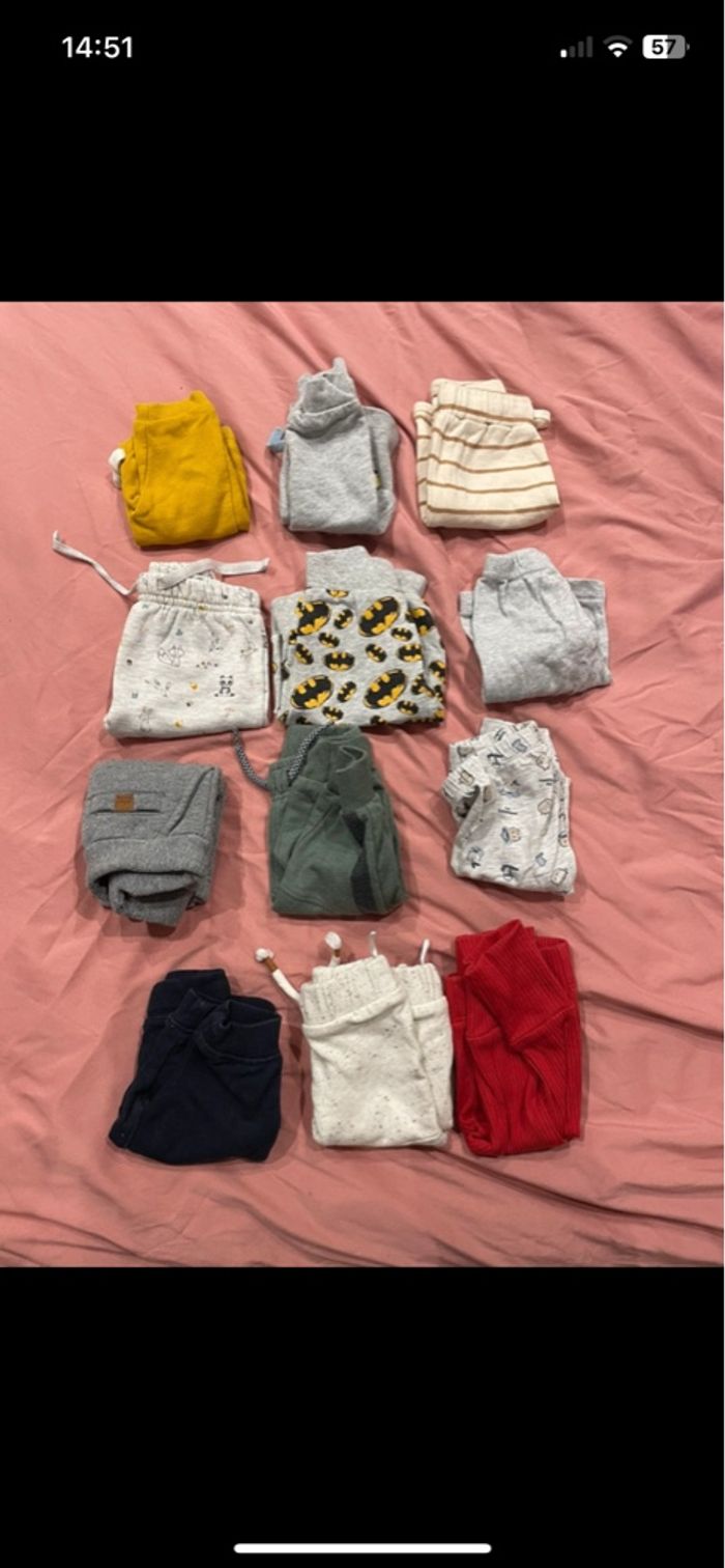Vêtements 1 mois : - 12 pantalons - 19 pyjamas - 3 pyjama sans pieds - 5 bodys manches courtes - 2 body manche longues - 3 tee shirt manche longue - 1 combi-short - 3 ensembles (sur un teeshirt il y a une petite tache voir photo)