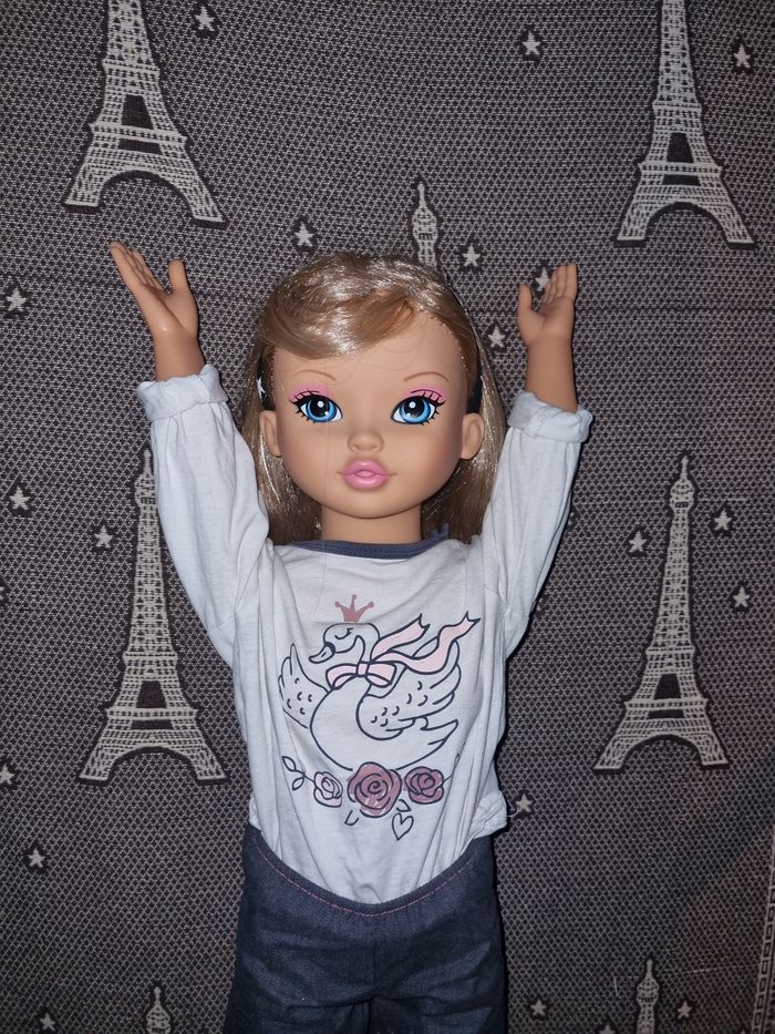 Grande poupée réaliste, avec vêtements et serre-tête,hauteur environ 82cm, bras jambes et tête articulé ,maquillage et poitrine ,très jolie et super cadeau de Noël ou autres 👍🏼.
