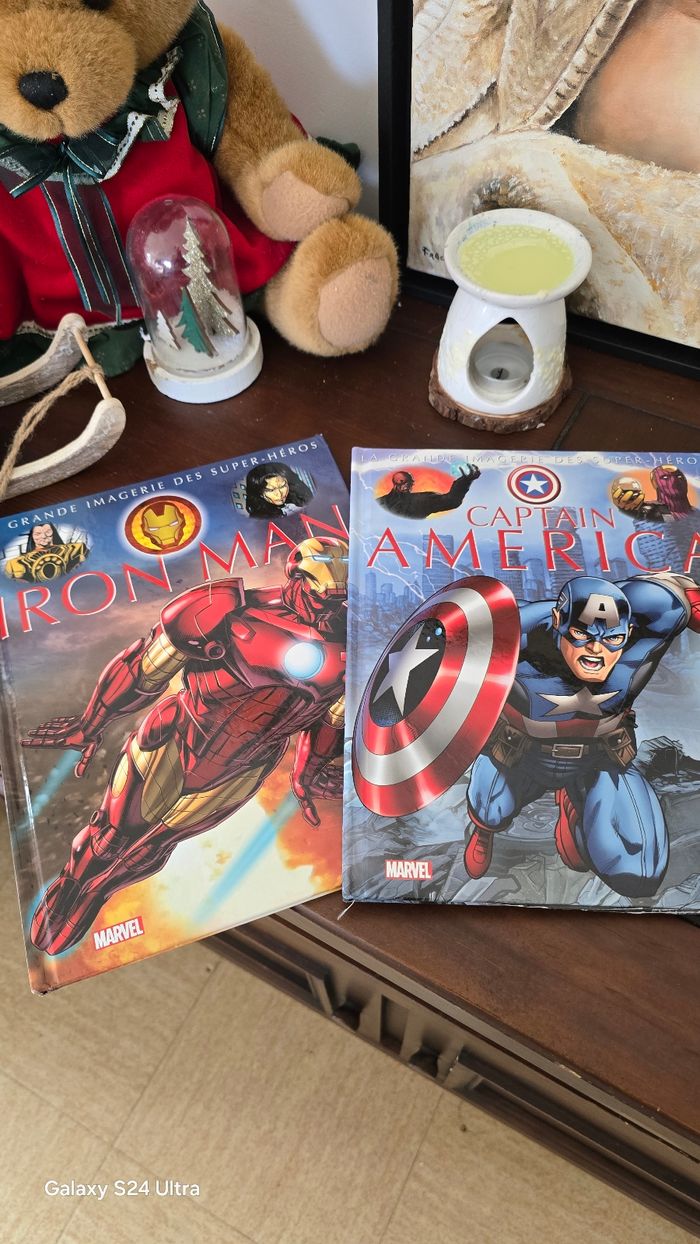 Deux livres la grande imagerie des supers héros captain america et iron man