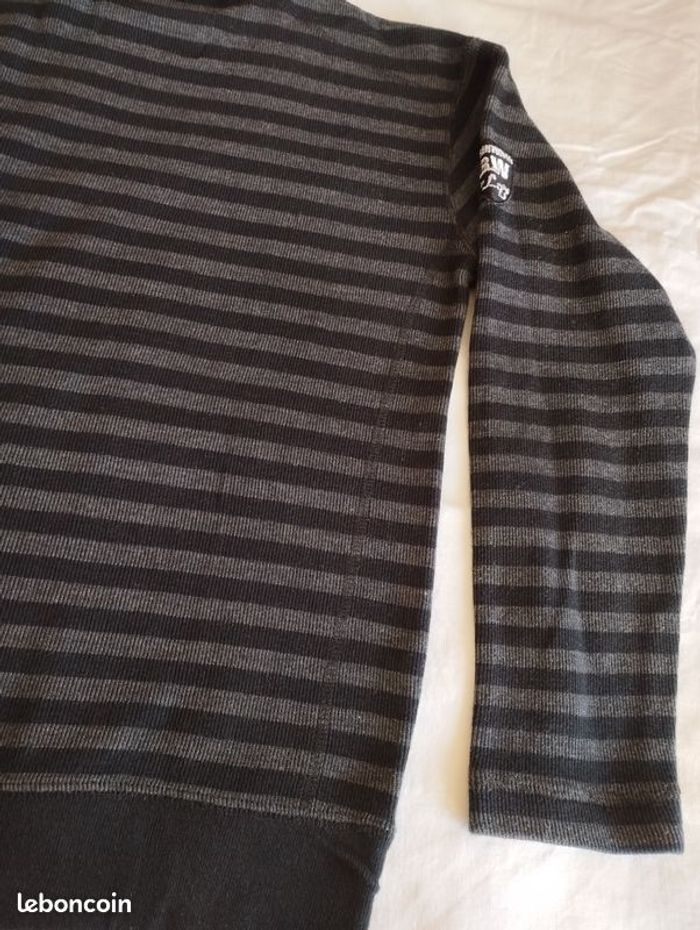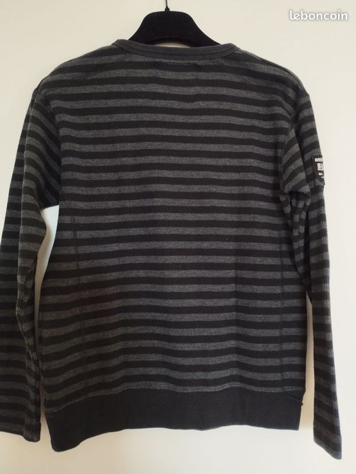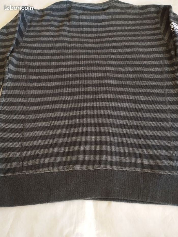 Pull enfant 12ans, de marque Brentwood, à rayures noir et gris, Longueur 56cm.