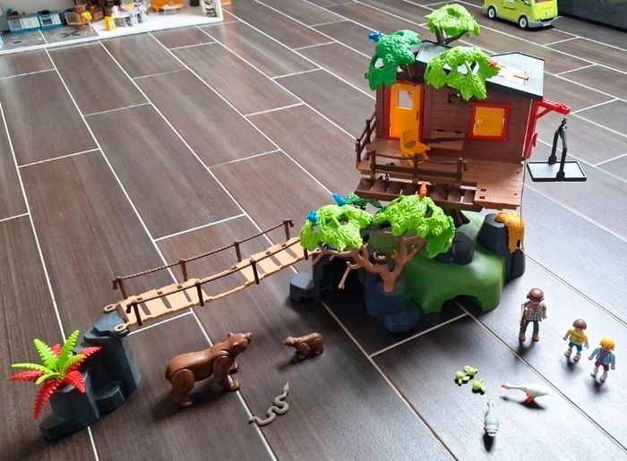 Je vends ce lot type Cabane dans les arbres, pont et animaux sauvages (ours et serpend) et domestique (oies). 1 adultes et 2 enfants.