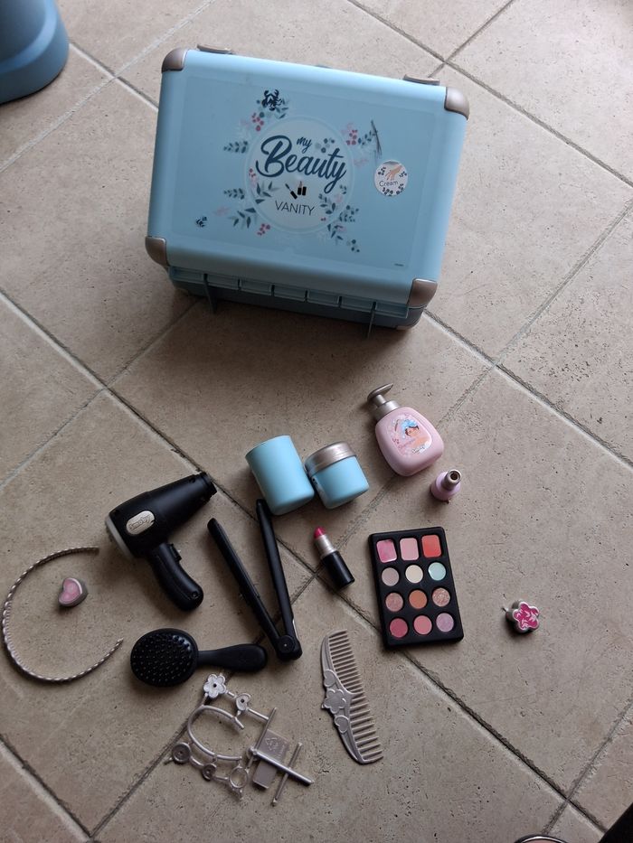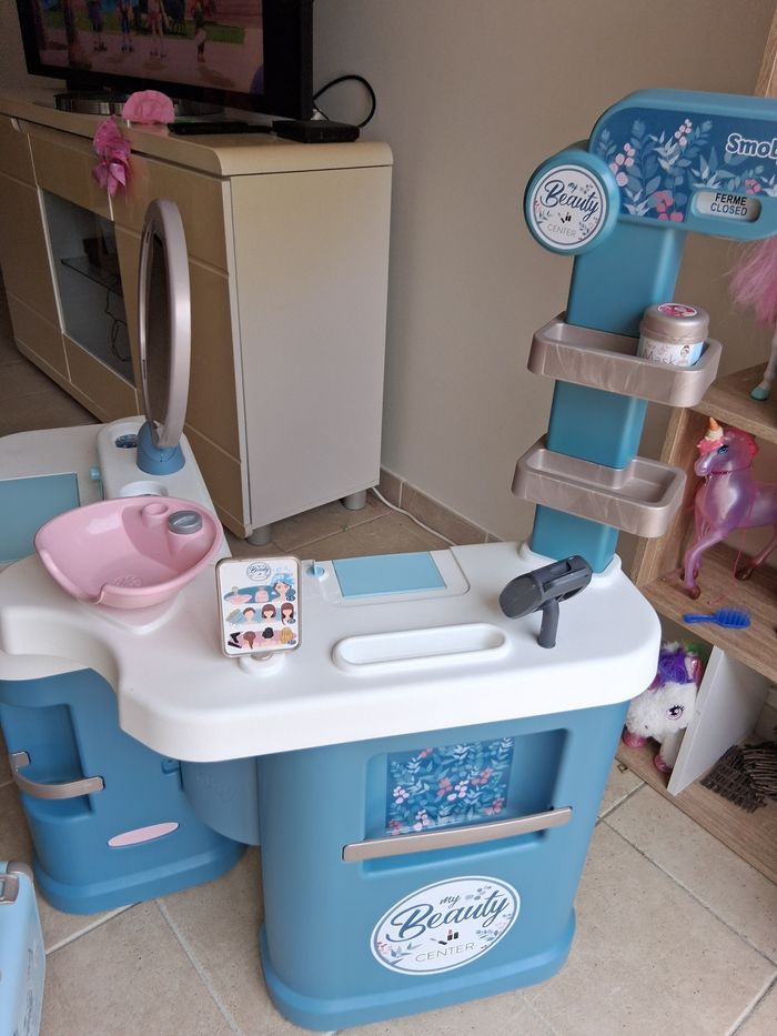 Lot comprenant le centre de beauté smoby (beauty center). C est le gros modèle à 119 euros et non pas la coiffeuse à 60 euros.