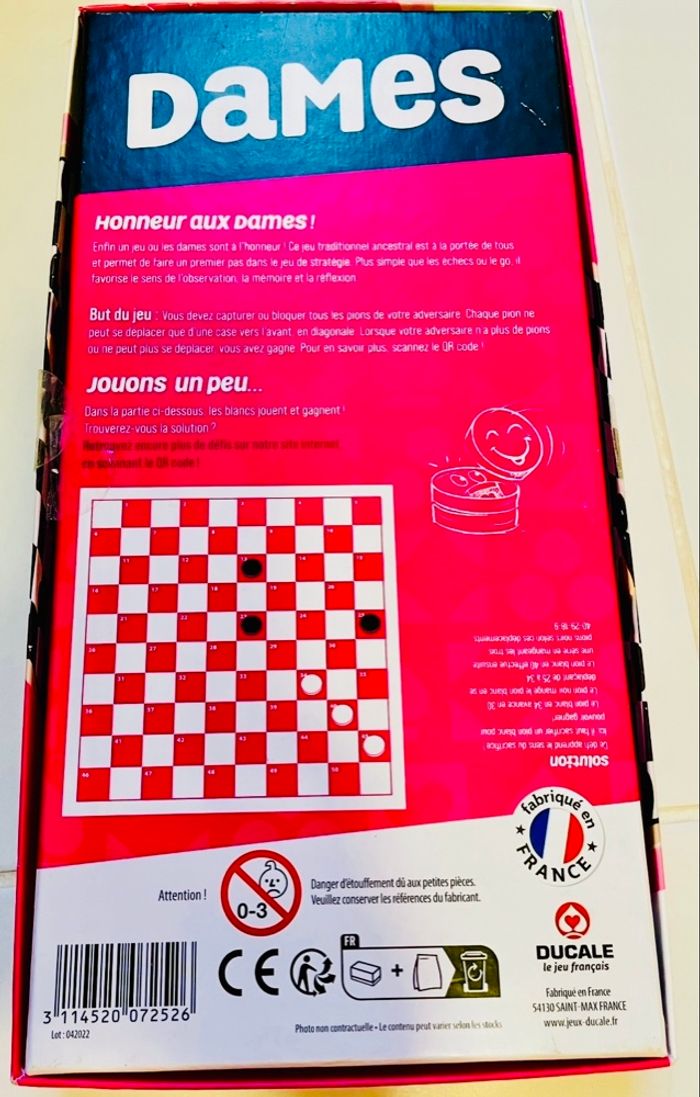 Jeu de dames Marque Ducale Pions en bois Dimensions plateau : 29 x 29 cm TBE