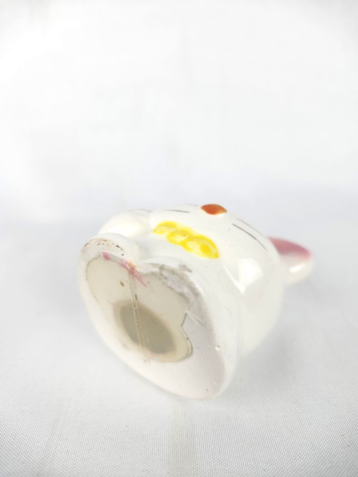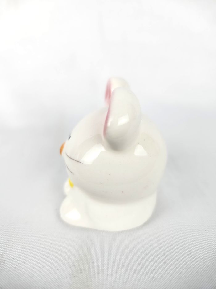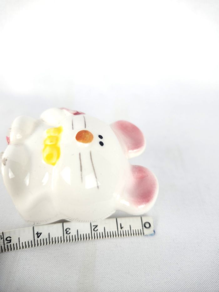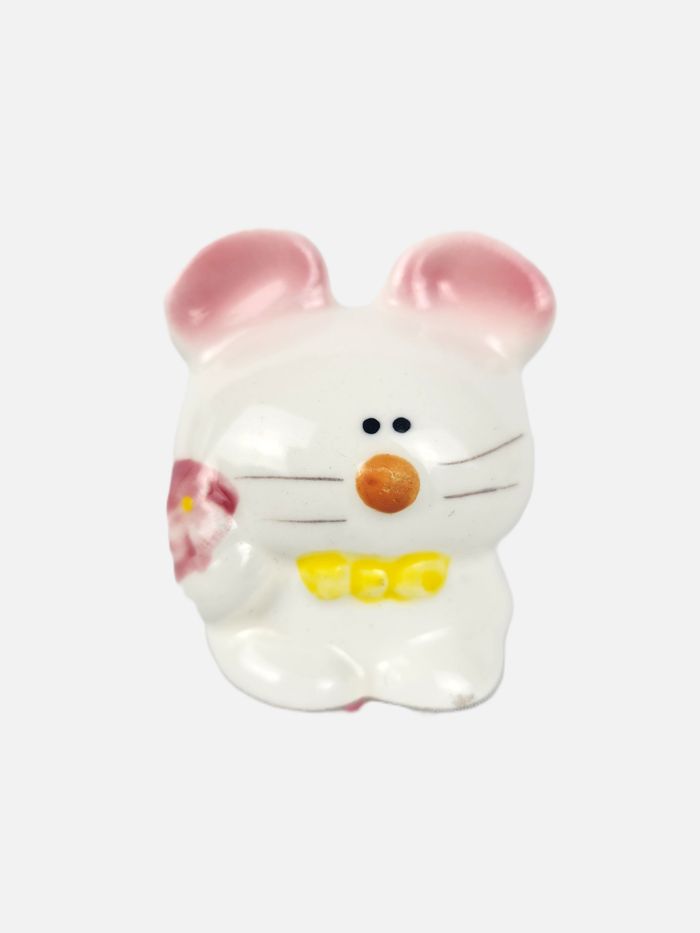 Adorables petite figurine décorative en porcelaine, représentant une souris stylisé. Parfait pour une collection de miniatures ou pour ajouter une touche délicate à une décoration Type : Figurine décorative miniature / Collection. Matière : Porcelaine / Céramique. Dimensions : Environ 4 cm de hauteur. Détails : Le personnage est blanc, avec un nez orange, des joues peintes en rose, des oreilles roses, et un nœud papillon jaune. Il tient une petite fleur rose sur le côté. État : Très bon état général. 📦 Expédition rapide et soignée sous 24 à 48 heures ouvrées. 🚚 N'hésitez pas à consulter mes autres articles en vente pour bénéficier d'un envoi groupé.
