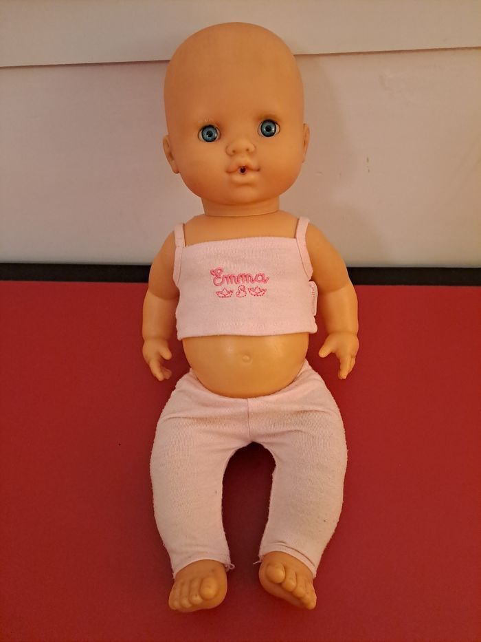 40 cm . Vetements corolle mais pas le poupon . Tete taché voir derniere photo.