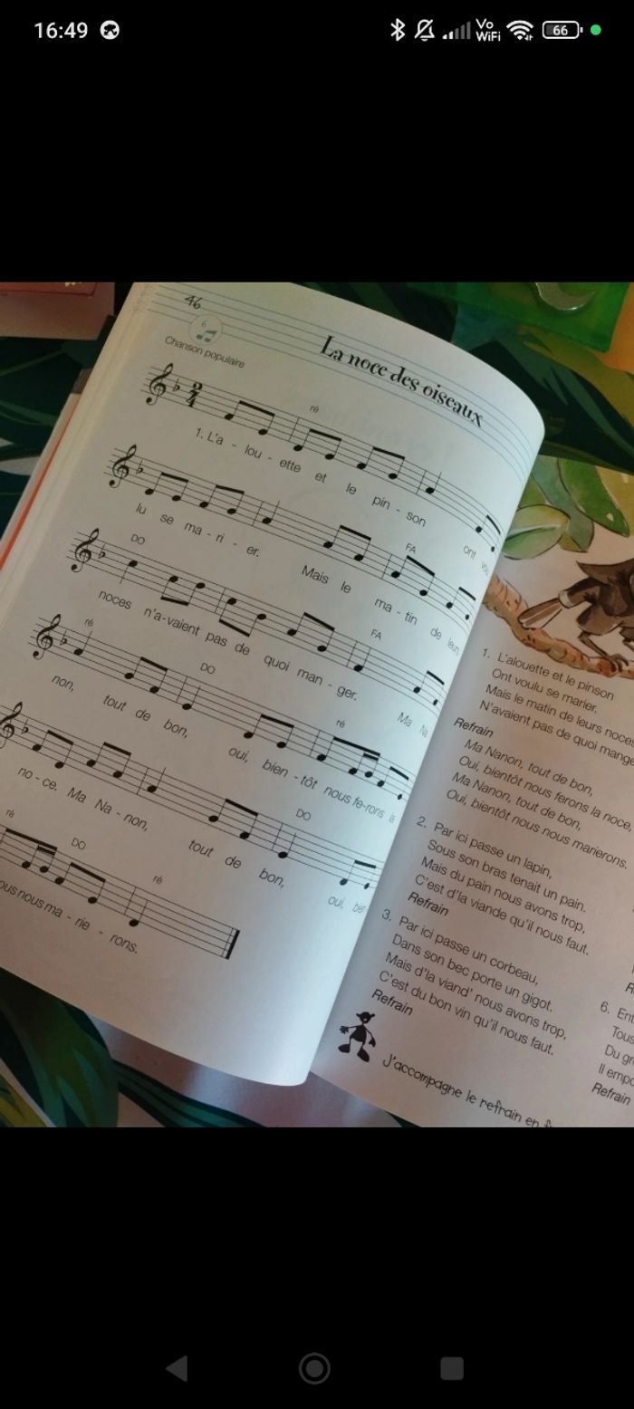 Livre avec le cd. Sur chaque page, il y a une partition et les paroles.