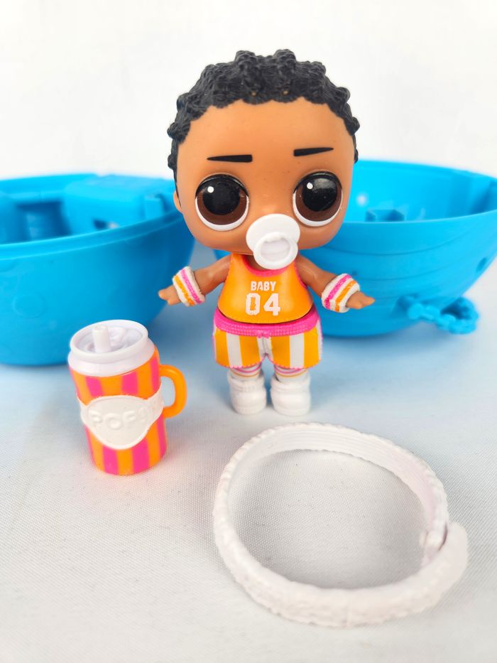 Poupée LOL Surprise! de la série Boys, représentant le personnage Dribbles. Ce personnage est reconnaissable à son style sportif (Basket-ball). Parfait pour compléter une collection de poupées LOL Surprise! ou comme idée cadeau pour un enfant. Modèle : Dribbles Boy Design : Le personnage porte un débardeur orange vif avec l'inscription "BABY 04", un short rayé, et des baskets blanches. Il est également doté d'une tétine blanche. État : Très bon état général. 📦 Expédition rapide et soignée sous 24 à 48 heures ouvrées. 🚚 N'hésitez pas à consulter mes autres articles en vente pour bénéficier d'un envoi groupé.