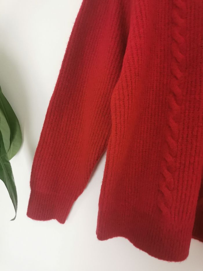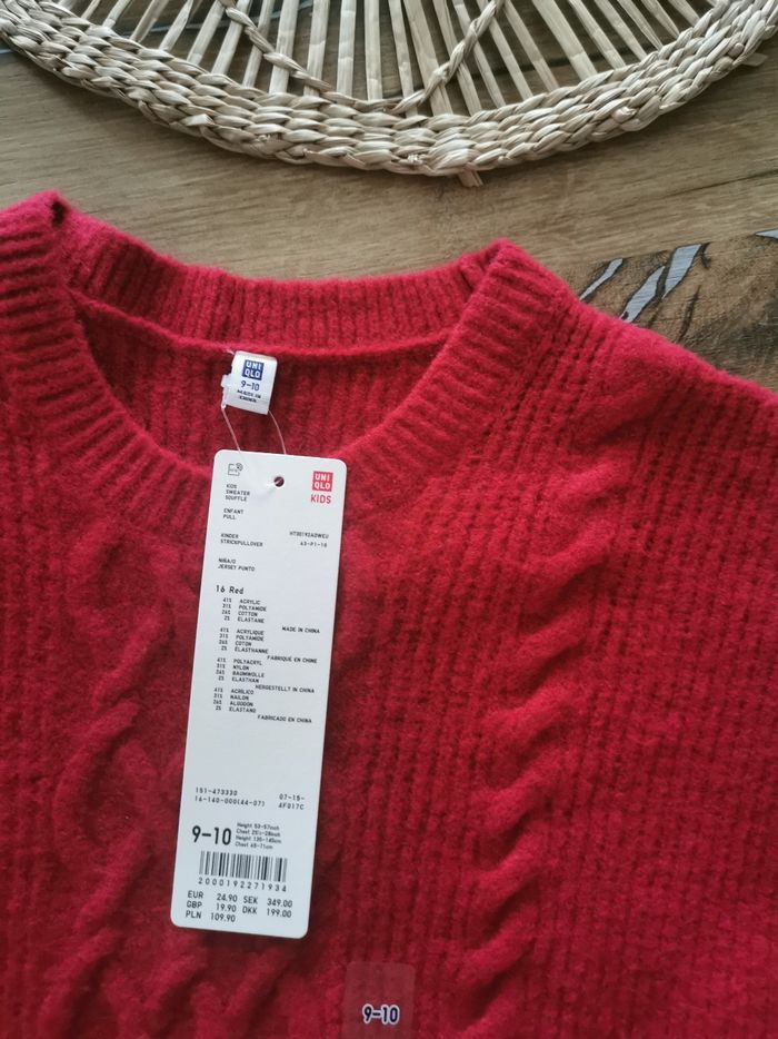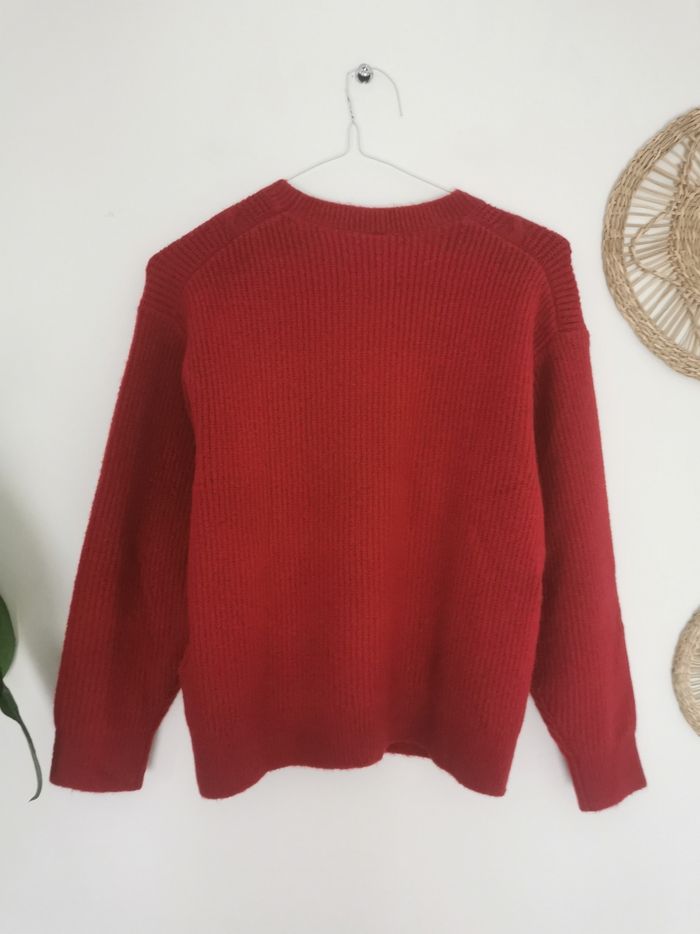 Pull rouge en maille soufflé Yarn torsadée Uniqlo 9/10 Ans