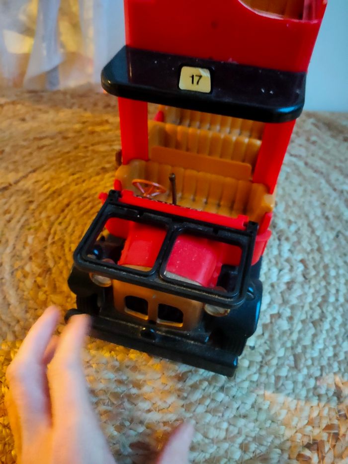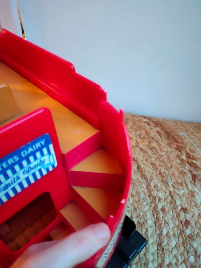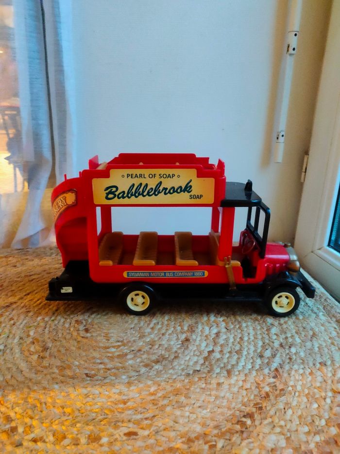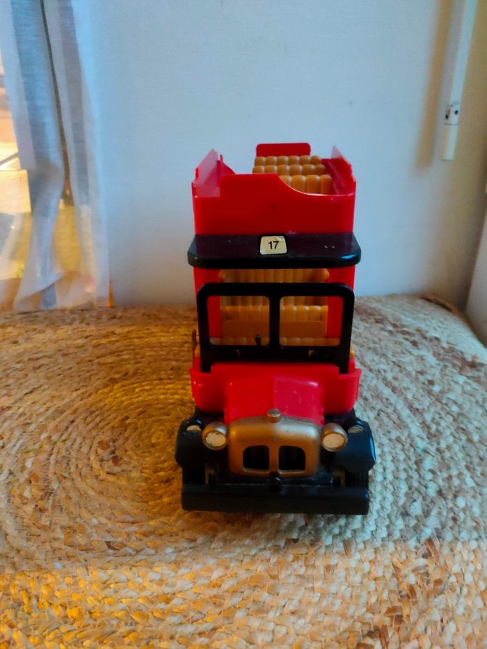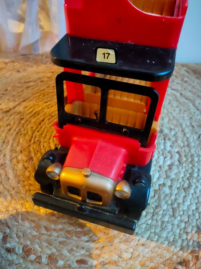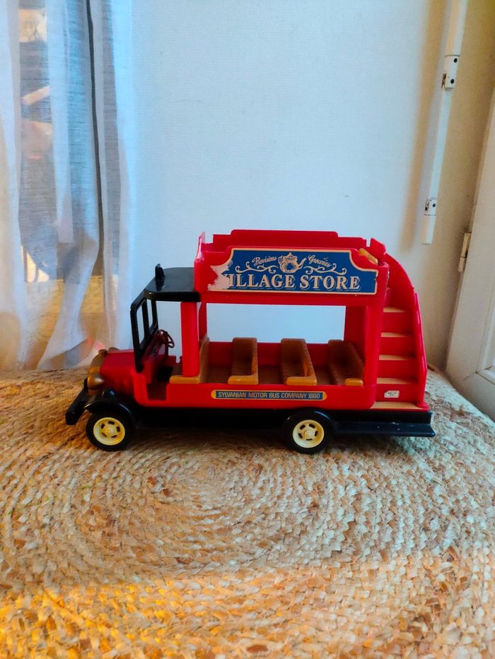 Bus scolaire style anglais sur 2 étages, coloris rouge, marque Sylvanian Families, modèle Vintage, il n'est plus commercialisé. Il a été manipulé, il a 2 petites cassé, une sur le rambarde de l'escalier en haut et l'autre sur le rebord devant a l'étage. Il y a également quelques autocollants qui manquent. L'ensemble reste en bon état. Prix ferme qui tient compte des défauts donc PAS DE NÉGO !!!