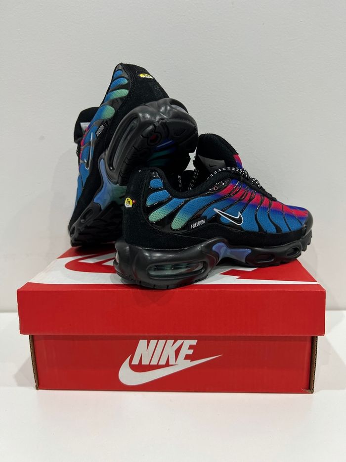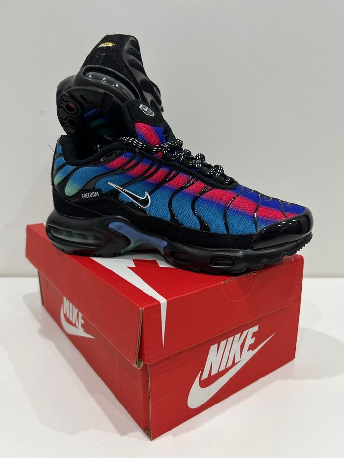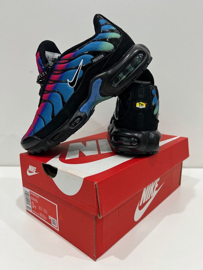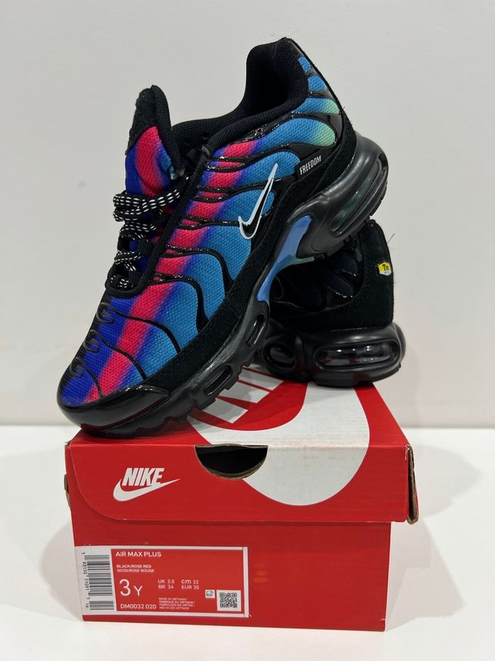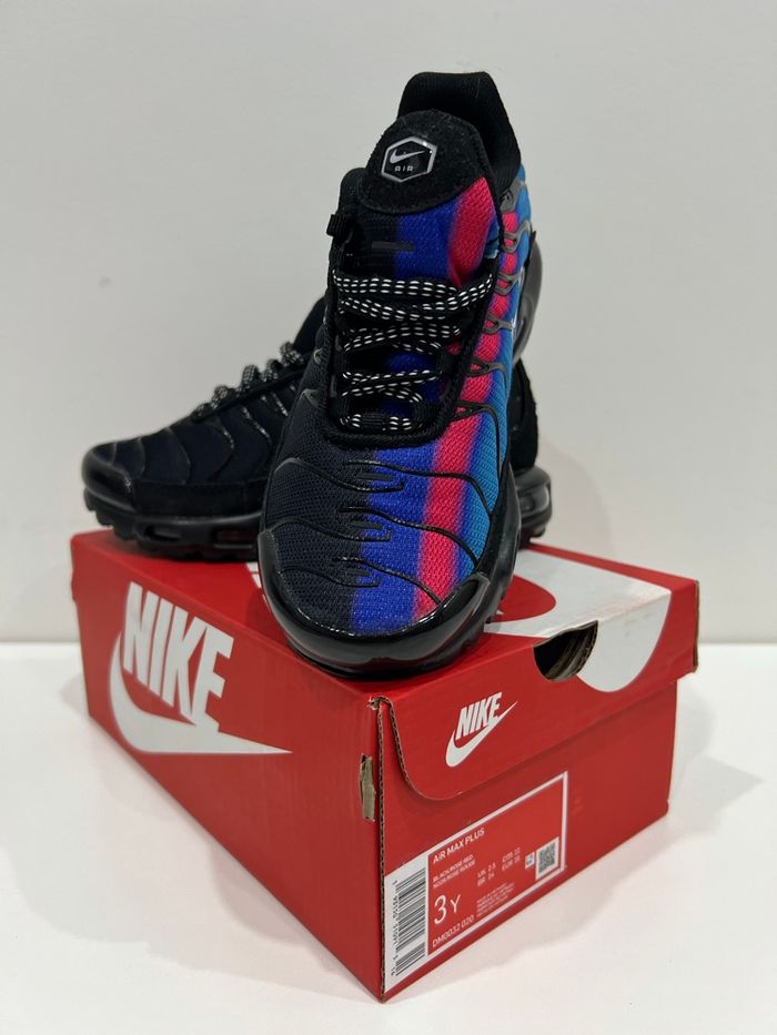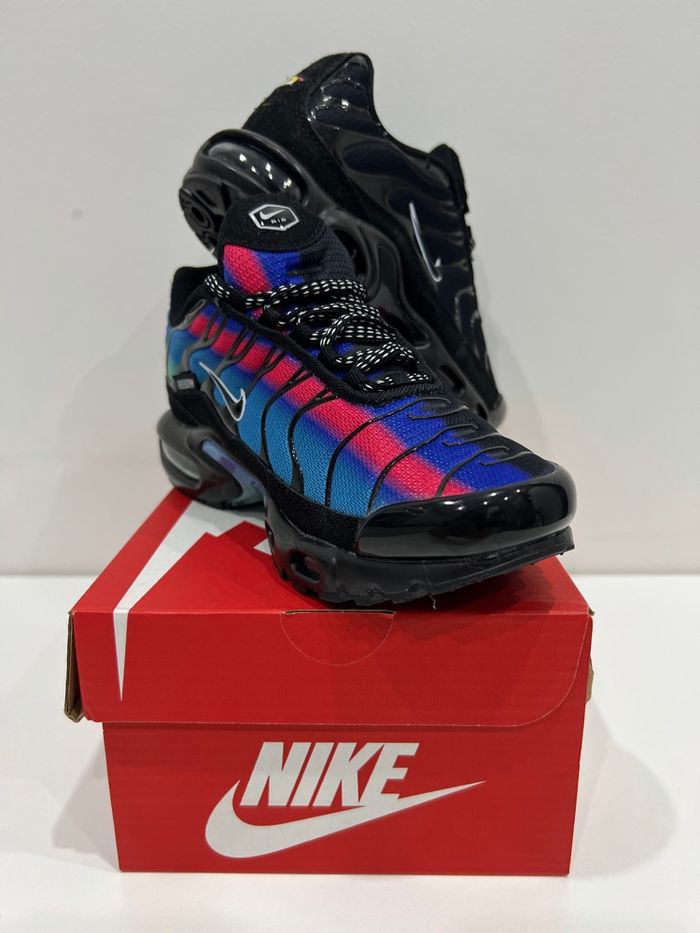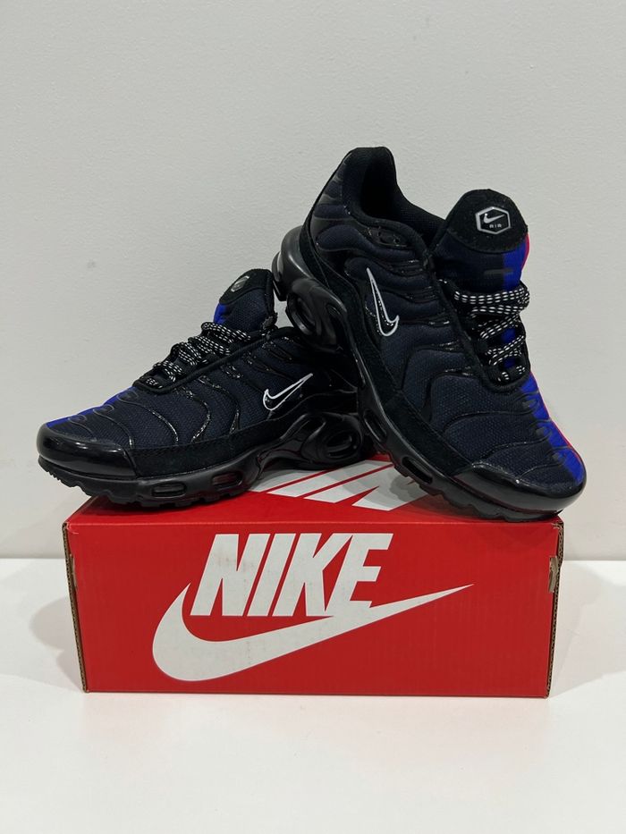 Chaussure Nike TN Neuf jamais porté dans la boîte Taille 33 Couleur Noir et Bleu Envoie rapide et soigner sous 24/48h Plusieurs tailles disponible du 30 au 35