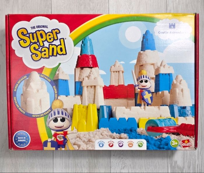 Set créatif Super Sand permettant de construire un château et d’imaginer de nombreuses aventures. Le sable magique est doux au toucher, facile à modeler et idéal pour stimuler créativité, motricité et imagination. Parfait pour les enfants dès 3 ans.