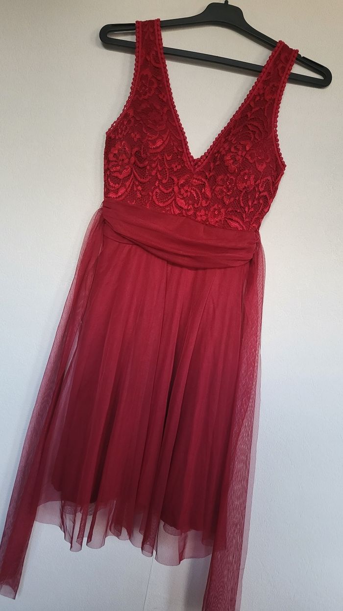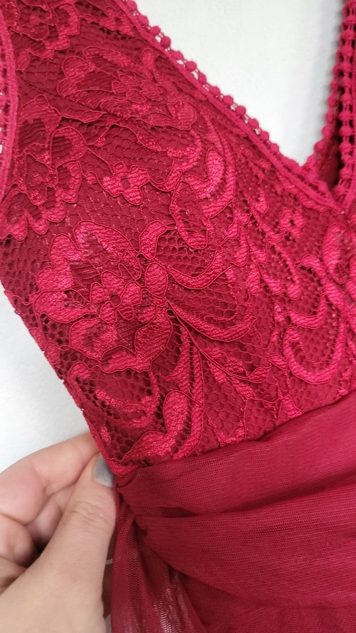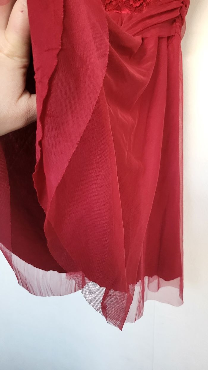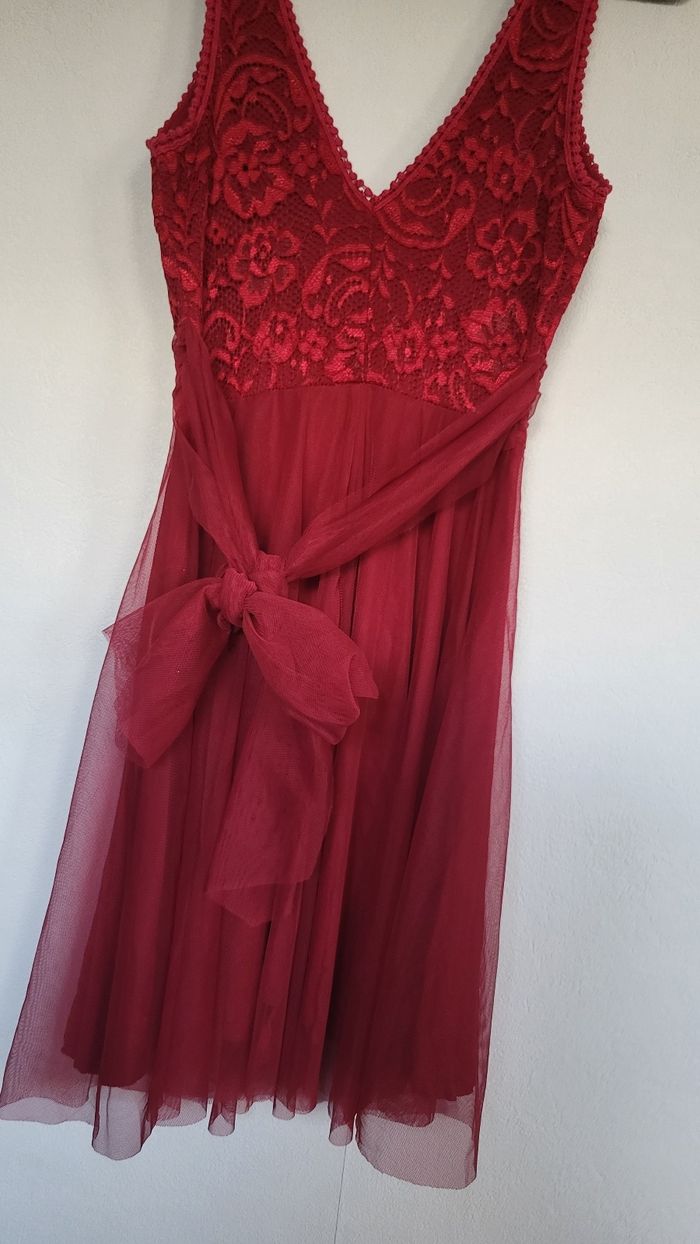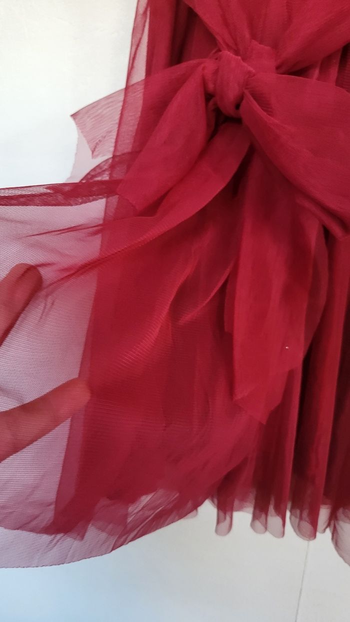 Magnifique robe de Noël état irréprochable comme neuf utilisé une seule fois l'année dernière robe très bien travaillé avec tulle doubler en dessous niveau torse la robe est parfaitement brodé ainsi quel a également des coques niveaux poitrine super qualité à vraiment prix attractif elle est très agréable à porter et met très bien en valeur pour une taille unique jusqu'à 40