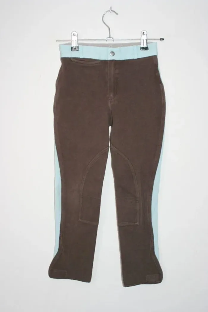 Pantalon d'équitation chocolat et bleu ciel, de chez Décathlon, taille 10 ans