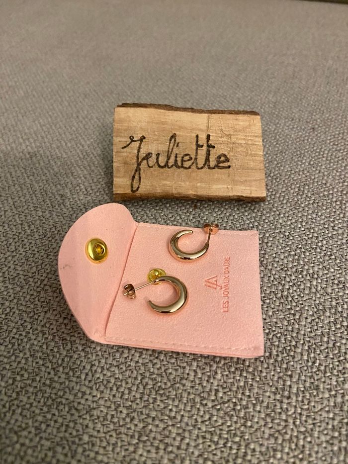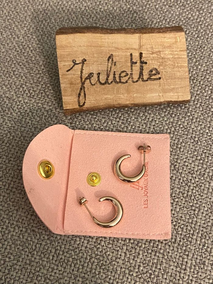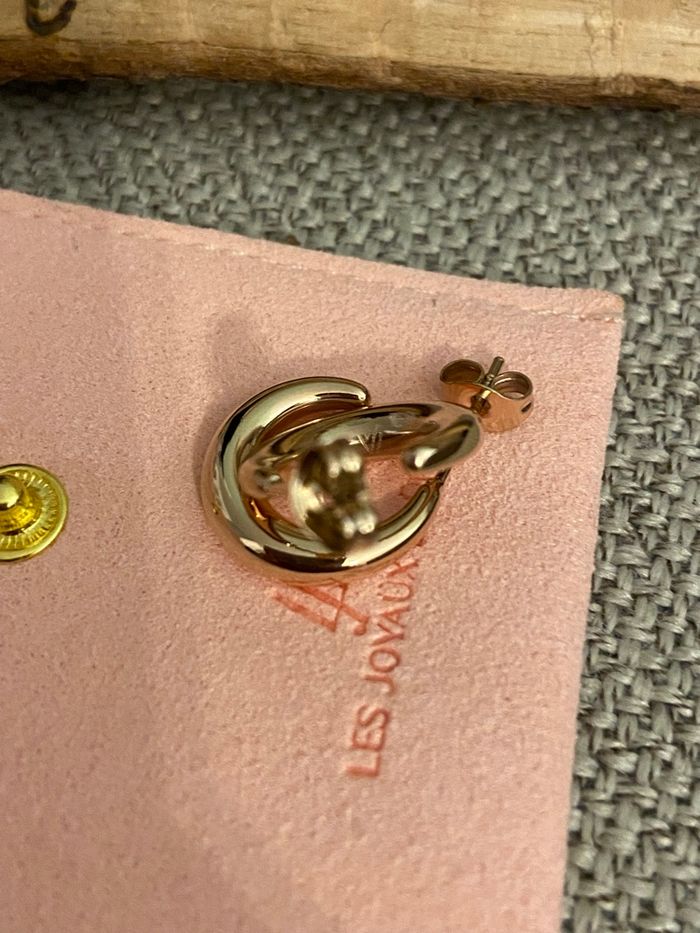 Magnifiques petites créoles couleur rose gold, de la marque Les Joyaux d’Auré.