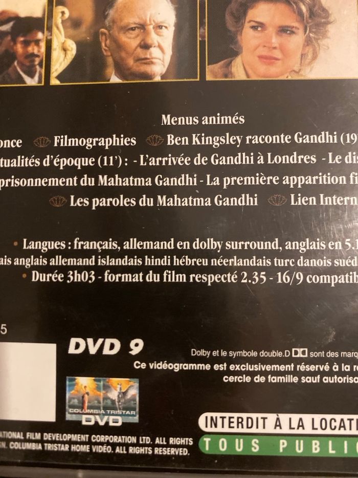 Film dvd gandhi Il est neuf mais la boîte a été remplacé car le disque ne se clipsait plus
