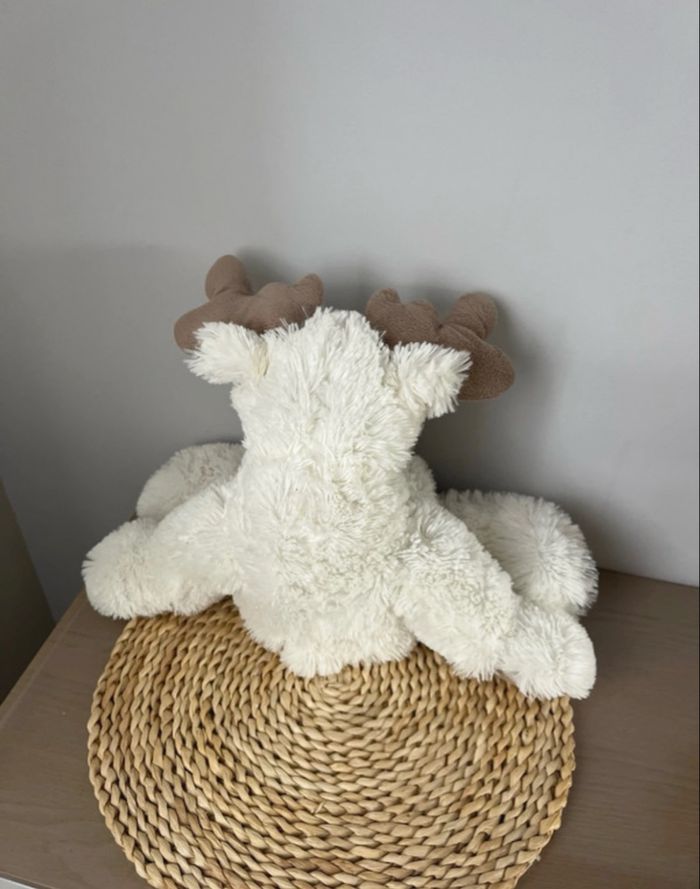 Peluche élan/ renne blanc. Peluche doudou .Tout doux ce superbe élan en peluche. Un bel élan blanc. Une grosse peluche ultra douce souple. Peluche élan aux normes CE tous ages pour le calin des enfants. Peluche douceur irrésistible pour le calin ou déco des grands.