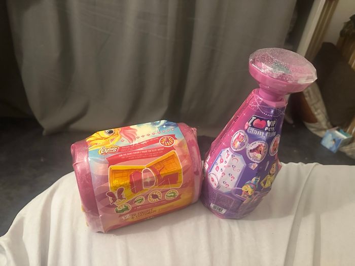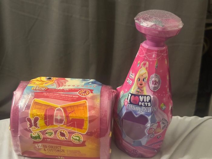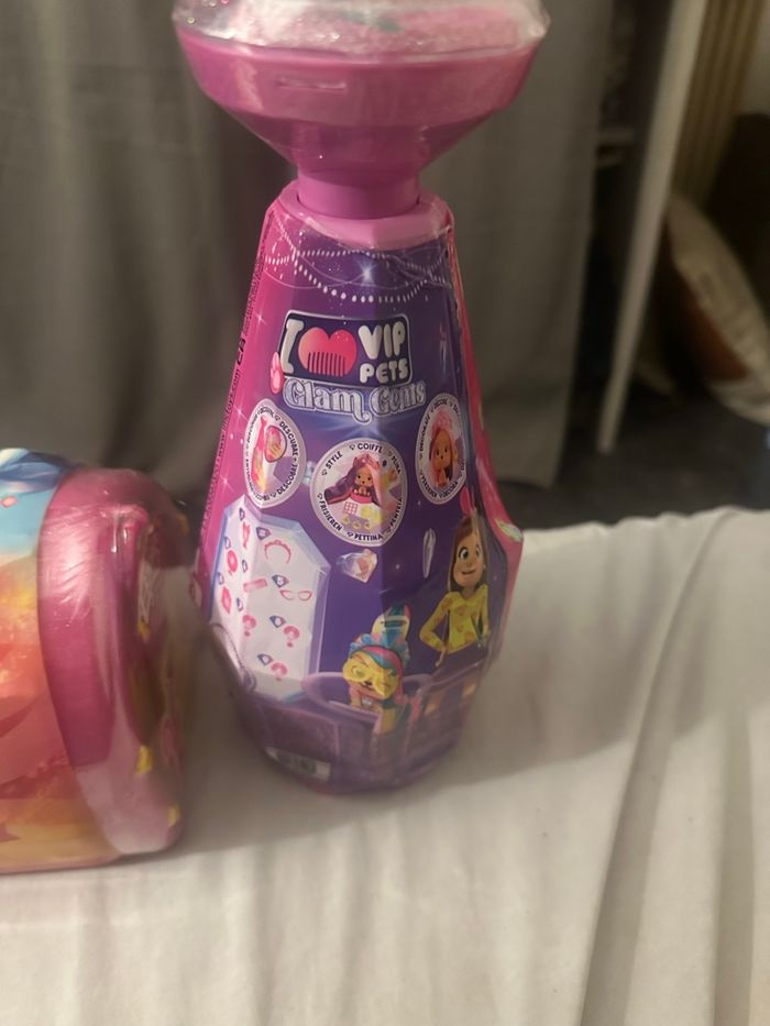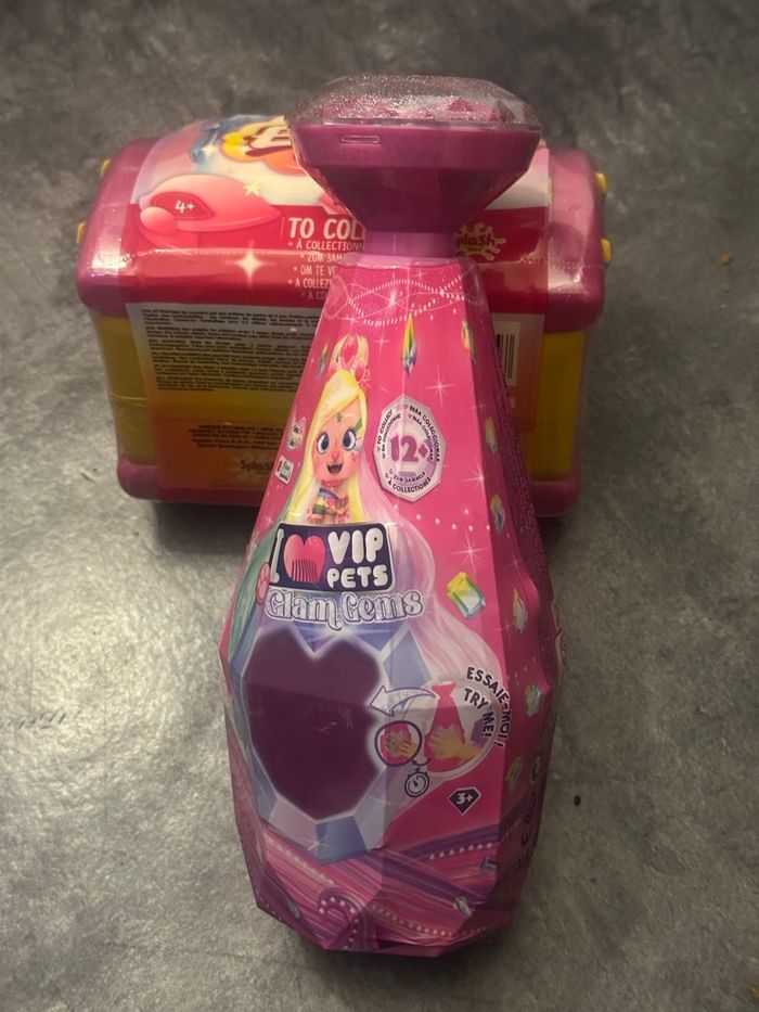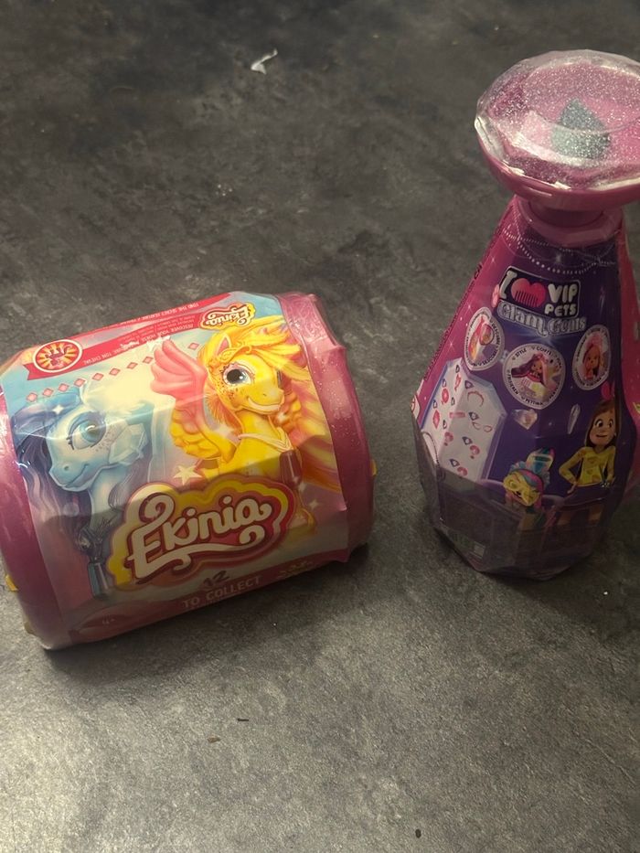 Lot de deux boites surprises Ekinia et glam gems . Lots d’une bouteille surprise vip pets et une boite surprise Ekinia.bouteille vip pets : POUPÉE SURPRISE : Ouvre la bouteille de shampoing pour faire apparaître ta poupée et décore-la d'une touche brillante