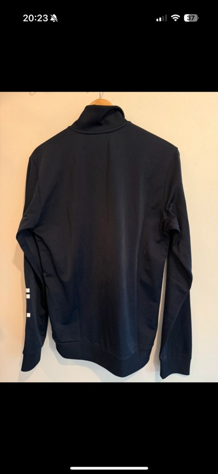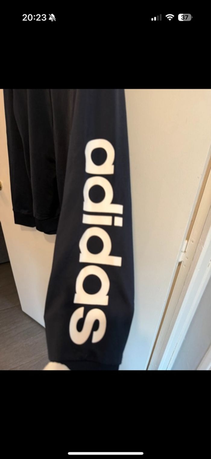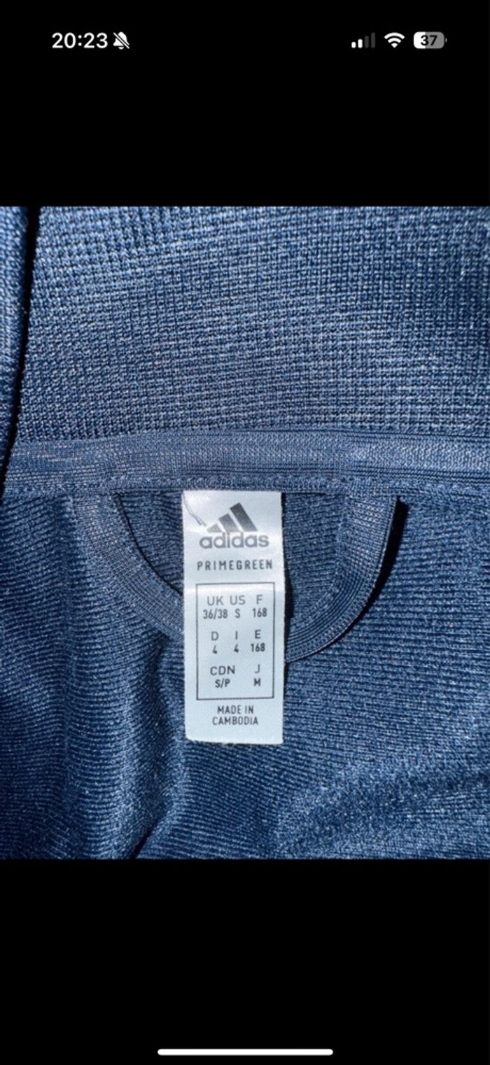 👨🏻Veste zippée jogging tendance logo imprimé et brodé adidas 📐 Taille : 36/38 🎨 Couleur : bleu marine 🔐Fermeture par zip métallique,Poches latérales,Taille et poignets élastiques