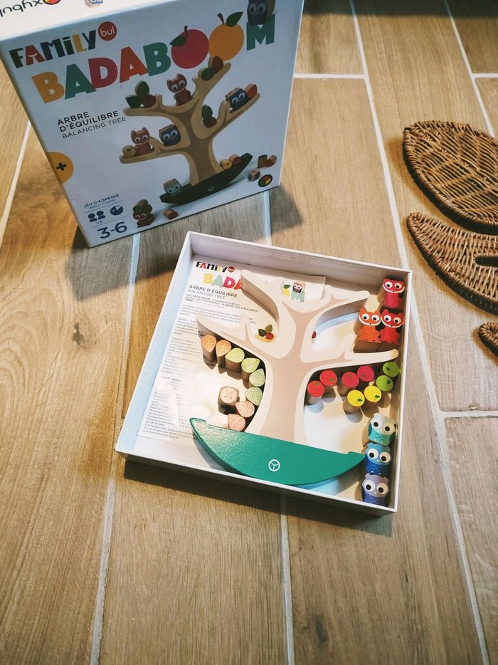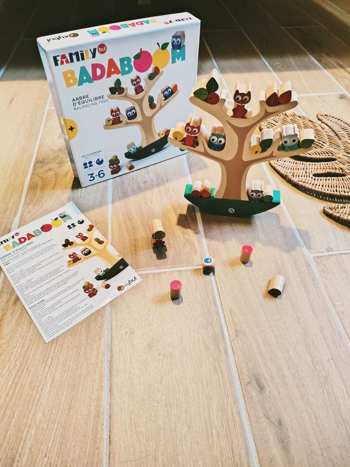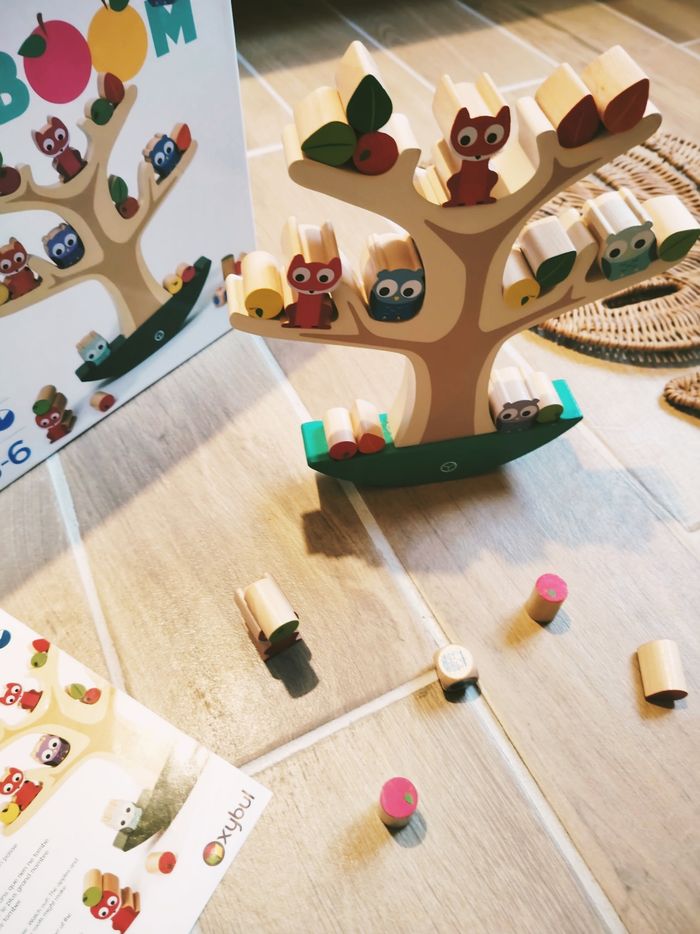 🦉Arbre d'équilibre Balancier family Badaboom avec Animaux fruits et feuilles en bois marque Oxybul JB1388