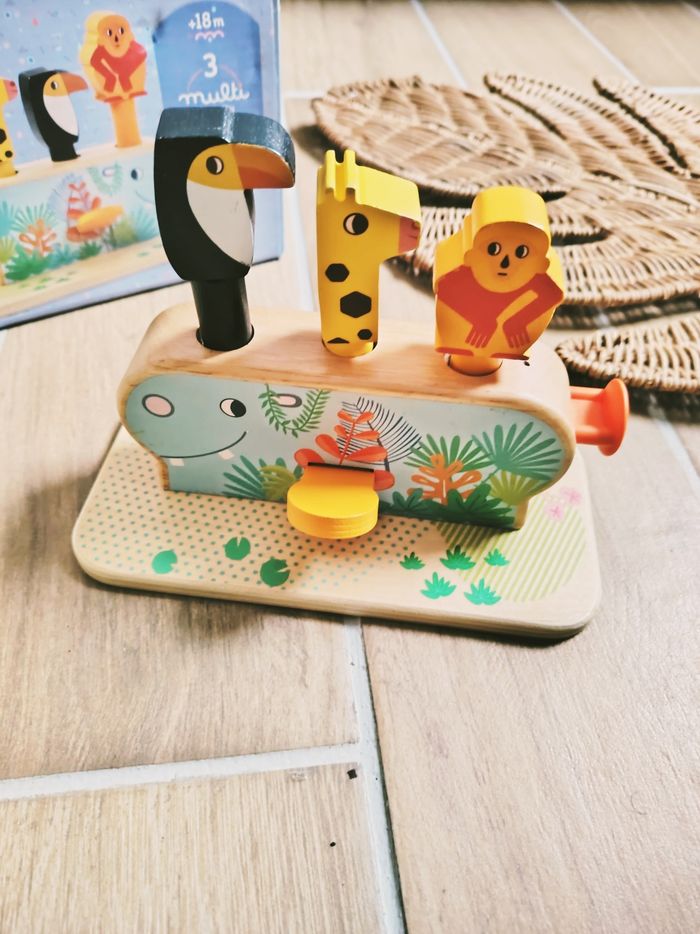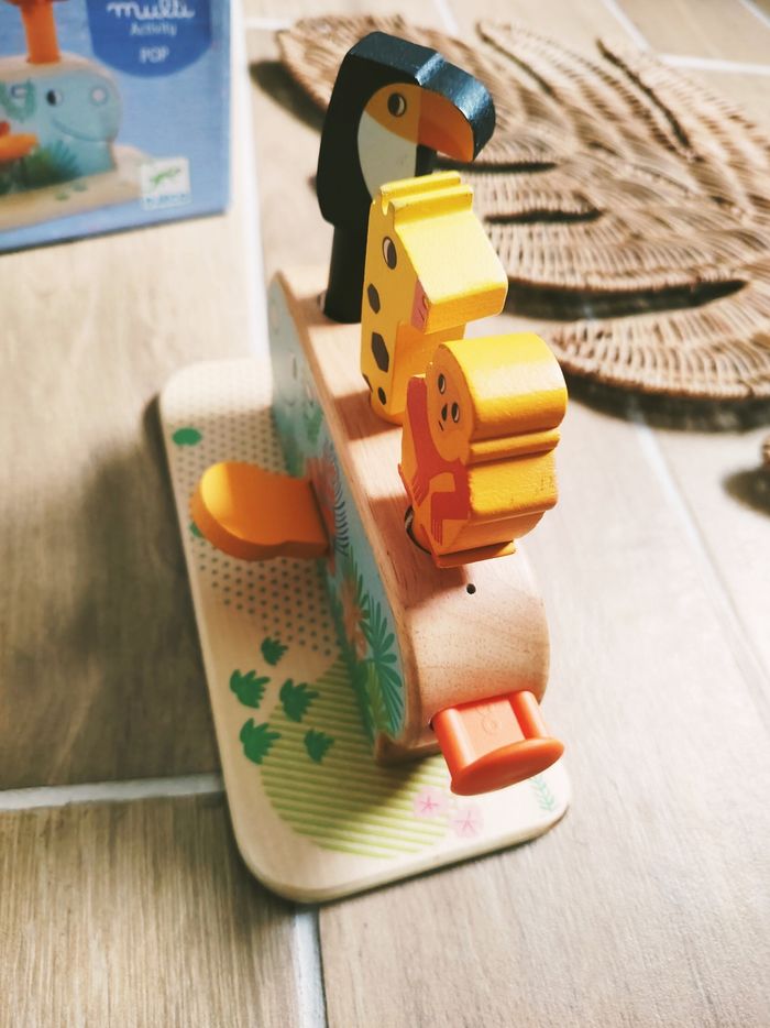 🐒Jouet Pop up 3 activités avec animaux à ressorts en bois marque Djeco - photo numéro 6