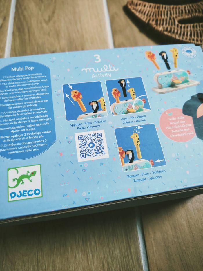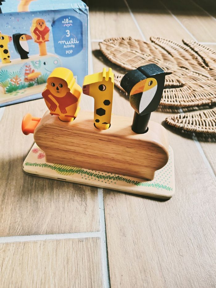 🐒Jouet Pop up 3 activités avec animaux à ressorts en bois marque Djeco JB1051 🎀Convient dès l'âge de 18 mois 🎀Ce Jouet ludique est composé de 3 animaux ✨Un Toucan qui saute en tapant sur le bouton ✨Une Girafe qui saute en poussant le bouton ✨ Un singe qui saute en appuyant dessus 🎀Objectifs ▶️Encourager la coordination main oeil ▶️Développer la dextérité et motricité fine ❇️N'hésitez pas à créer un lot pour économiser sur les frais de port❇️ Premier âge, Jouet bébé, Jouet d'activité, Jouet ludique, Jouet eveil, Mémorisation, Memoire, aptitude, motricité, jeu Adresse, Montessori, jeu bois, Jouet bois, Jouet vintage, Jeu adresse, jeu apprentissage, dextérité, jeu sensorielle, jeu educatif, activités et Jouet pour bébé, trier empiler, encastrer, jeux et jouets