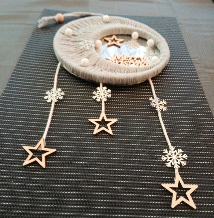 Miroir décoratif avec macramé et lumière