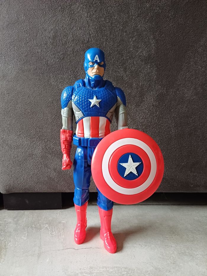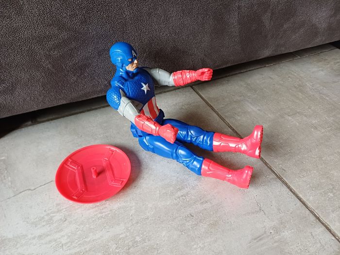 Figurine en bon état : voir photos. Elle mesure 30 cm. Elle s'articule au niveau des épaules et des hanches. Le bouclier peut s'enlever et se mettre dans sa main.