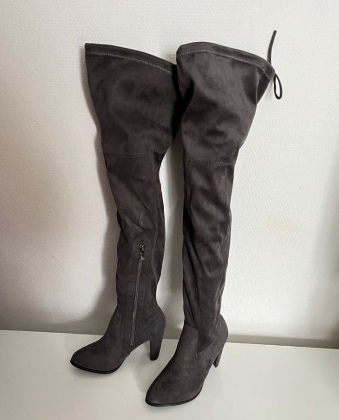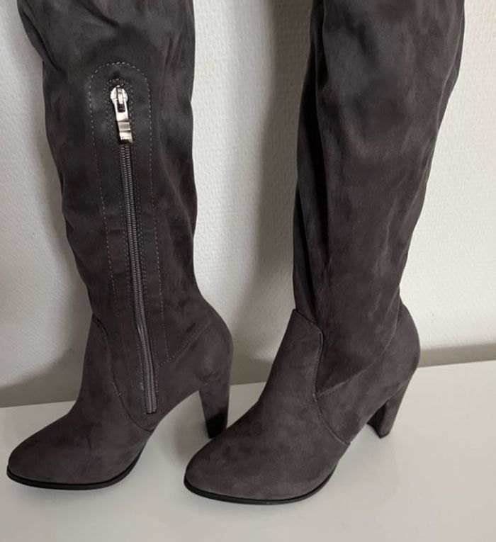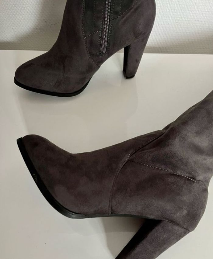 Cuissardes grises 37 talons 9 cm, matière effet daim Neuves - photo numéro 5