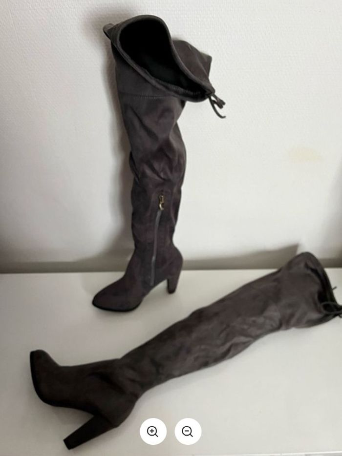 Cuissardes grises 37 talons 9 cm, matière effet daim Neuves