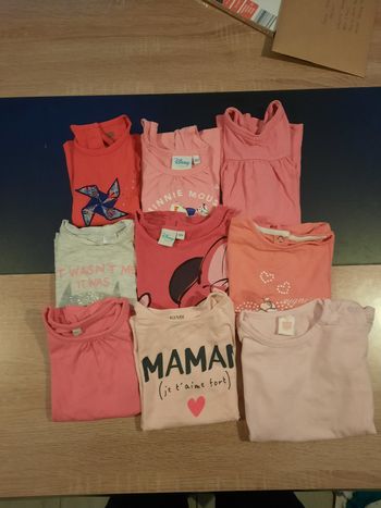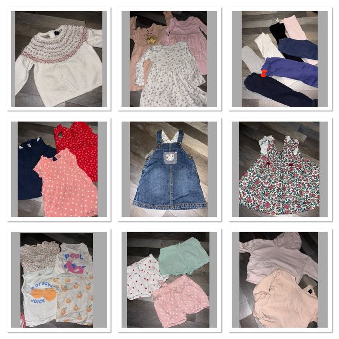 Lot 18 mois fille: - 1 pull - 3 robes été - 4 tee shirt manche courte - 3 robes manche longue légère - 1 salopette - 3 shorts - 4 legging 3 jogging - 1 robe été fleuri - 2 sweats 25 pièces pour 15e