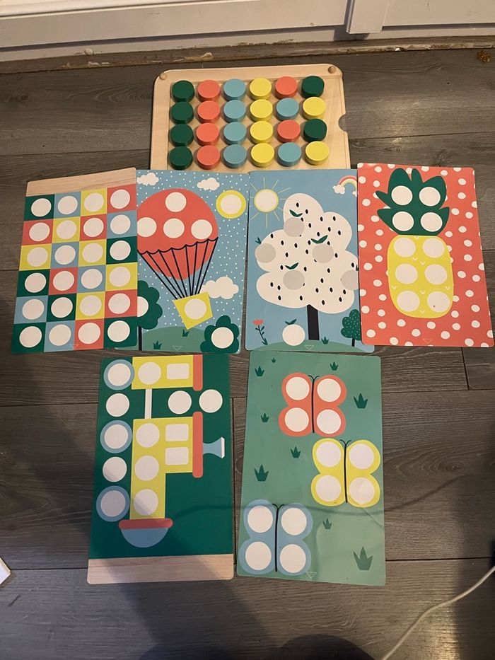 Vend premier colorino en bois de la marque Vertbaudet 12 possibles et 24 pions colorés