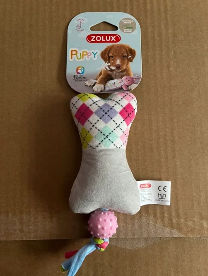 Jouet Peluche Puppy Tiny os Gris sonore Dimensions : 20 cm longueur, 8 cm largeur - photo numéro 1