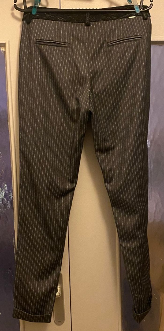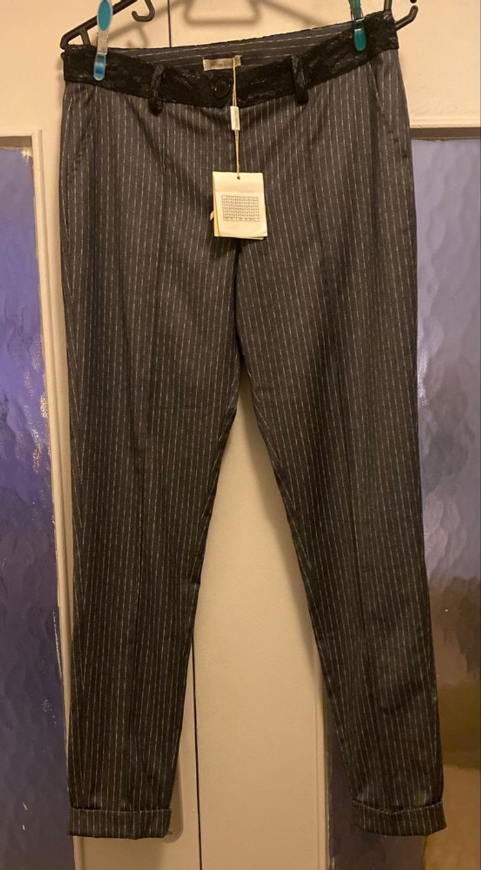 Pantalon habillé, marque FRACOMINA JEANS fluide, gris foncé à rayures blanches, neuf. Taille 40/42.