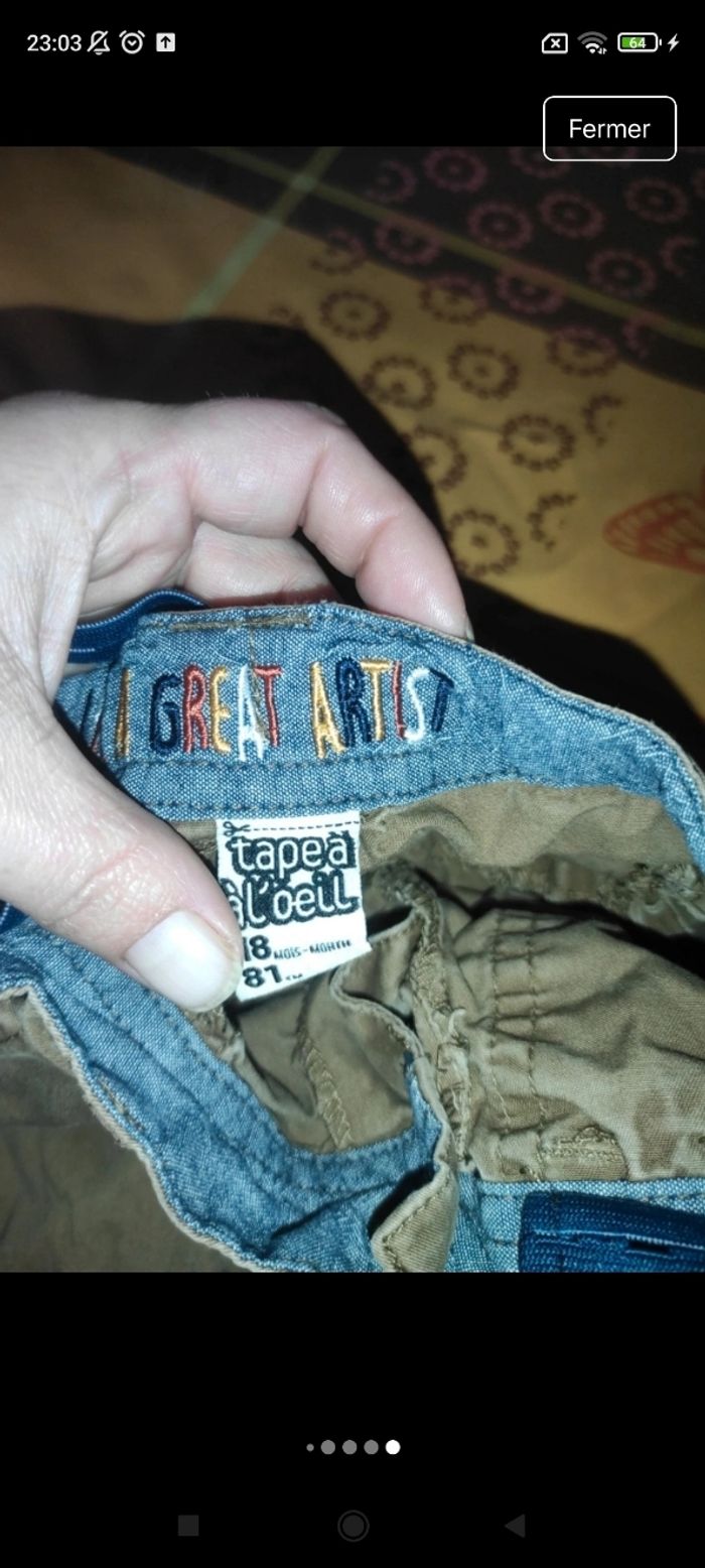 Pantalon garçon Fin et léger Taille 18 mois Réglable niveau taille Tape à l'oeil Largeur taille 22cm extensible Longueur 46cm E31