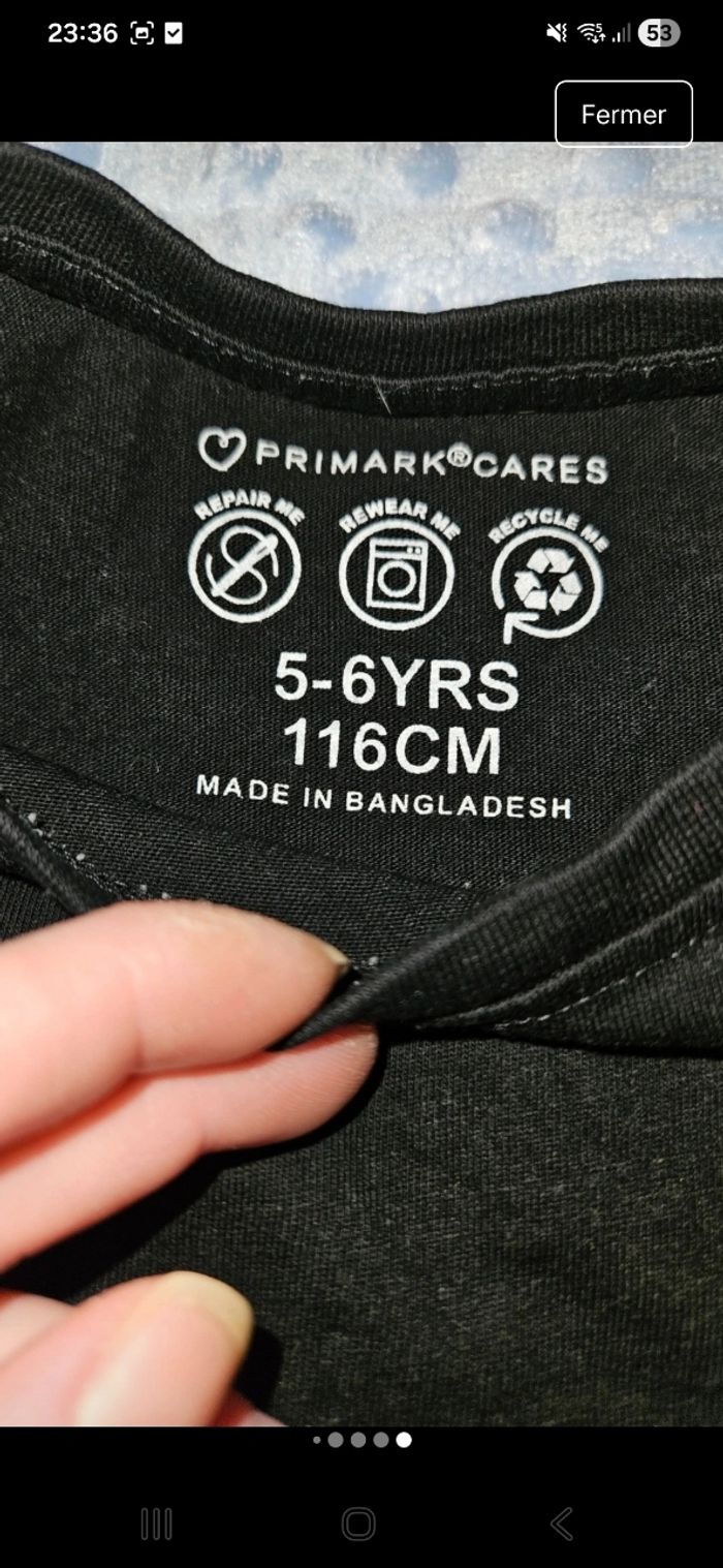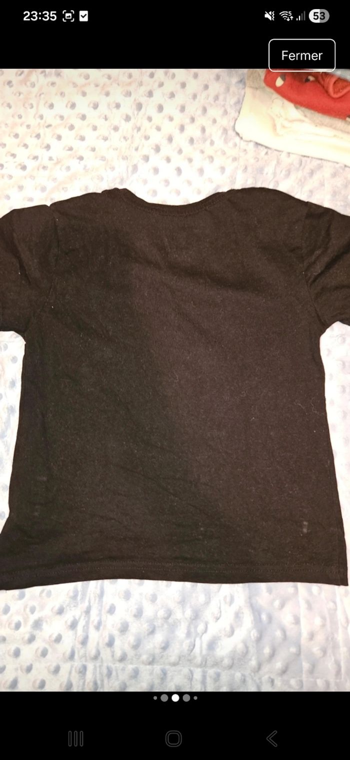 Vend Tee-shirt 5/6 ans en très bon état Les traces en bas c'est les trace d'épingle un coup de repassage et plus de trace J'ai 2 fois le même dans mon dressings