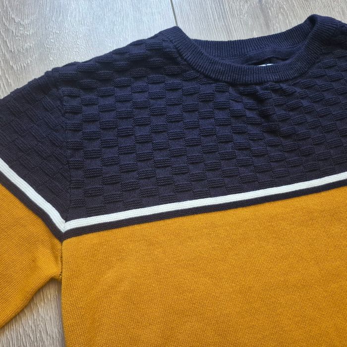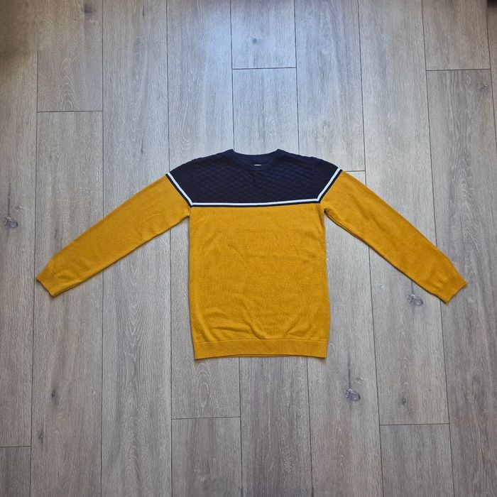 Très beau pull moutarde et bleu marine. Garçon 12 ans . Marque Gémo
