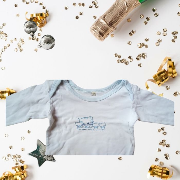 Ce body blanc, aux bords bleus, adorable est l'arme secrète contre l'ennui. L'inscription "Papa tigre raconte une histoire" est un ordre, pas une suggestion !