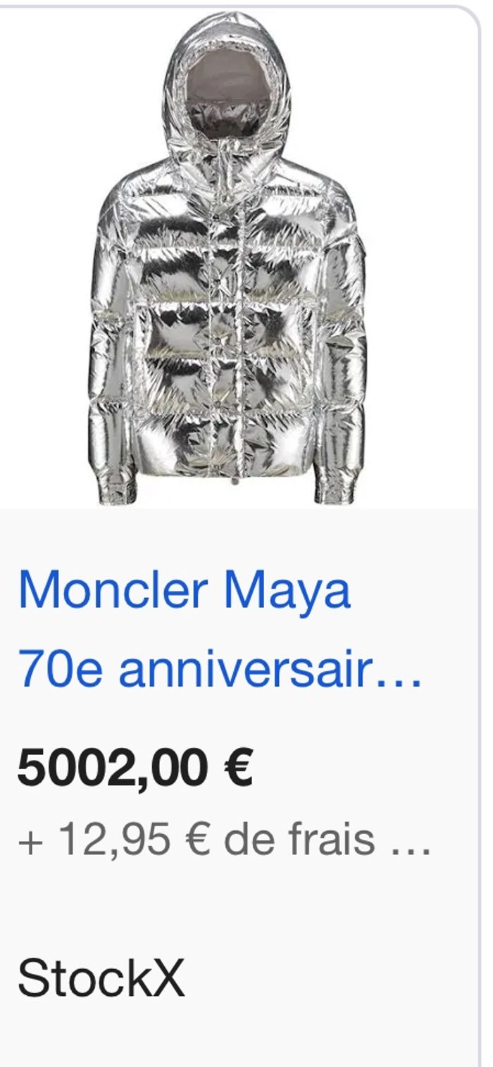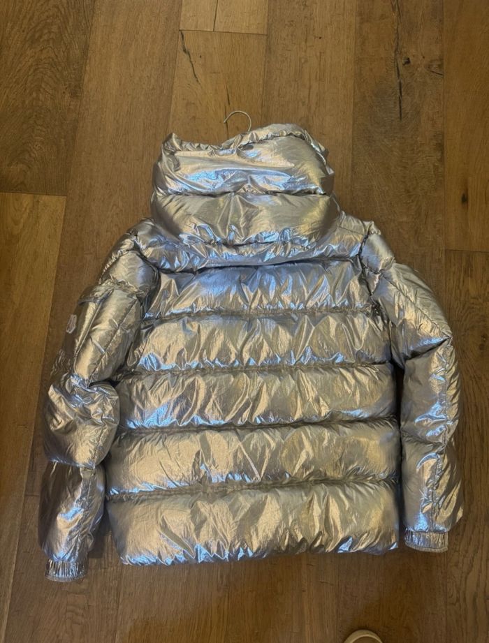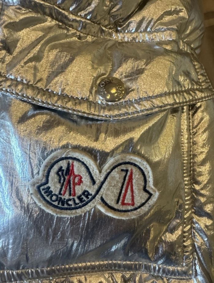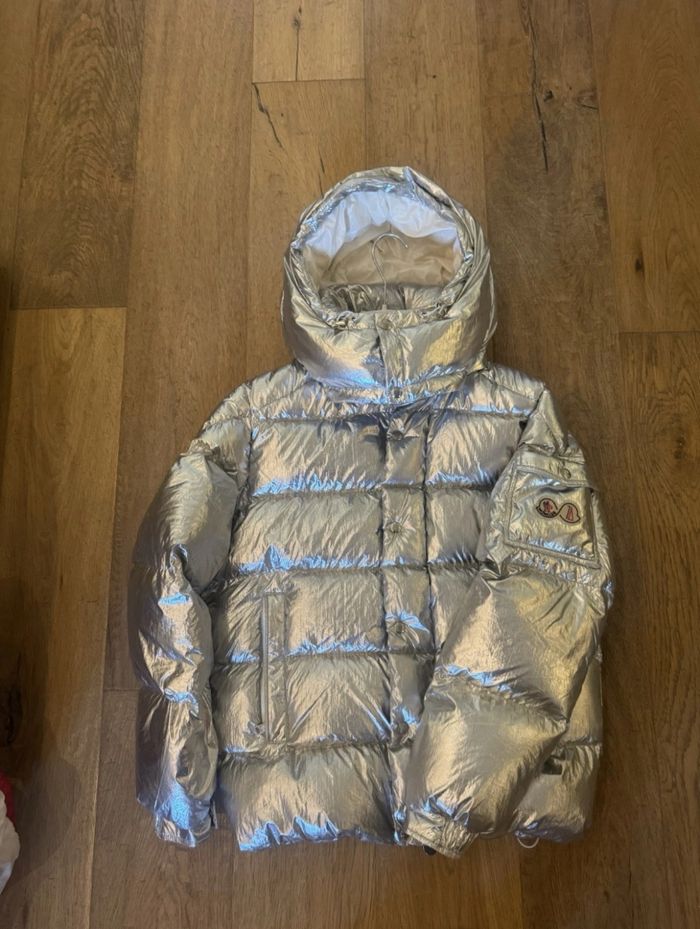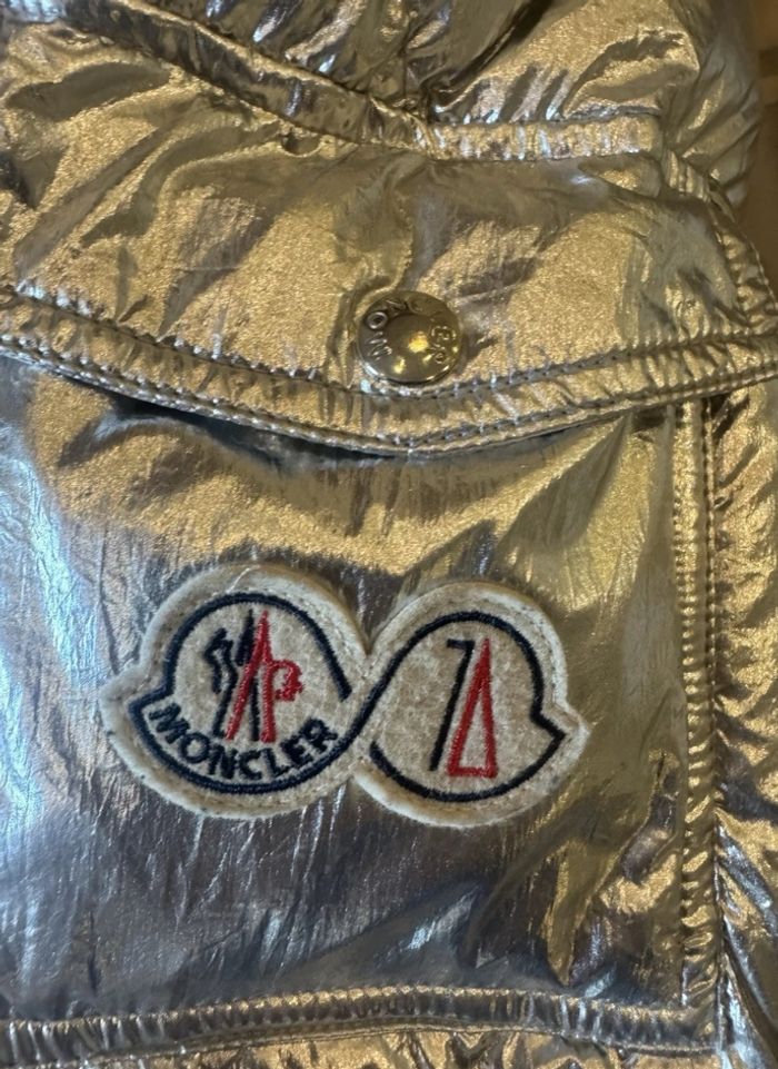Je mets en vente une doudoune Moncler argentée, édition limitée 70ᵉ anniversaire, un modèle rare et très recherché.