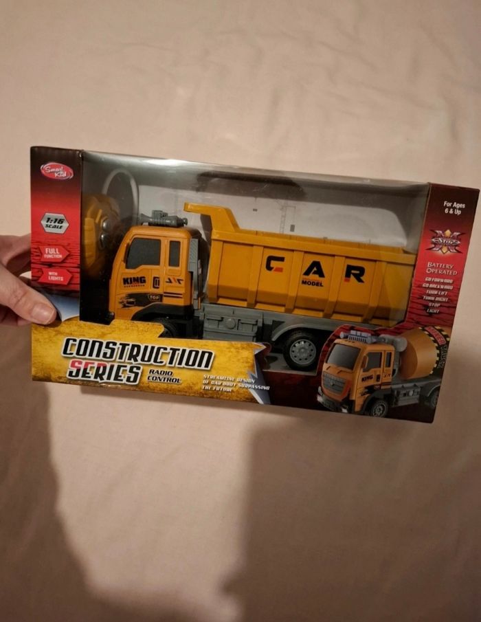 Véhicule de chantier – camion benne télécommandé – dès 6 ans Modèles Full Function : avancent, reculent, tournent, avec lumières. Fonctionnent à piles (non fournies - 5 piles AA). Neuf, jamais utilisé. 📦 Envoie dans sa boîte d’origine.