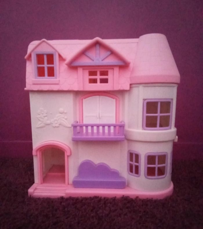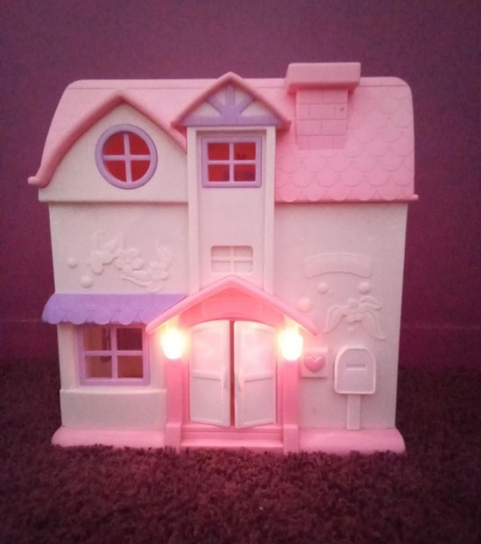 Maison pour poupée LOL ou Playmobil très peu utilisée Il y a une petite lumière qui s'allume et on entend le petit chien aboyer quand on appuie sur la sonnette. Dimensions Maison dépliée fait 69 cm de largeur Maison pliée fait 33 cm de largeur 35 cm de hauteur 18 cm de profondeur Très bon état sauf la couleur du toit qui est un peu passée