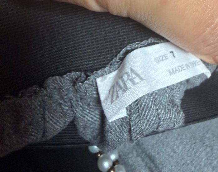 Pantalon hiver jambe large, taille 7 ans Zara 5€ avec élastique au ventre pour un bon maintien une petite ceinture pour faire le style très joli à porter