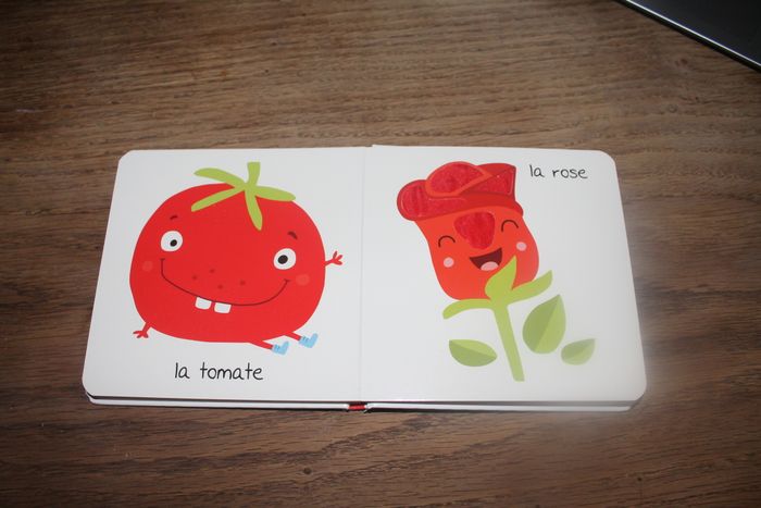 Livre pour enfant sur la couleur rouge. Différente textures sur les pages. Toutes les pages sont visibles en photo