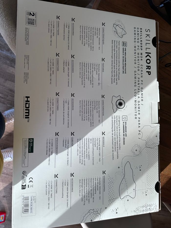 Écran Skillkorp M24 Écran PC Gamer MPRT 1ms HDMI 2.1 Tmds 180 Hz FHD 1920x1080 Acheter en mars, encore sous garantie. Facture disponible